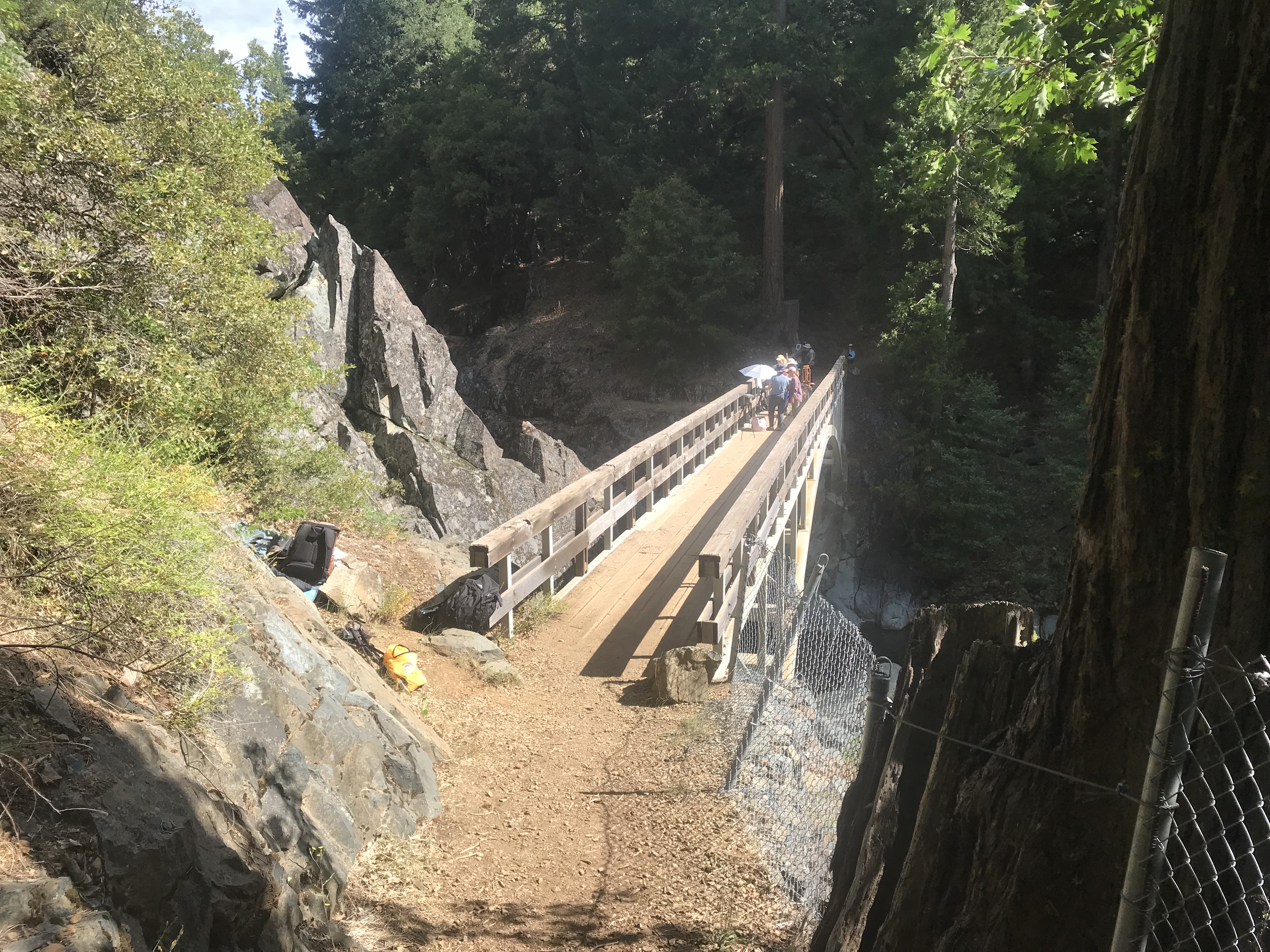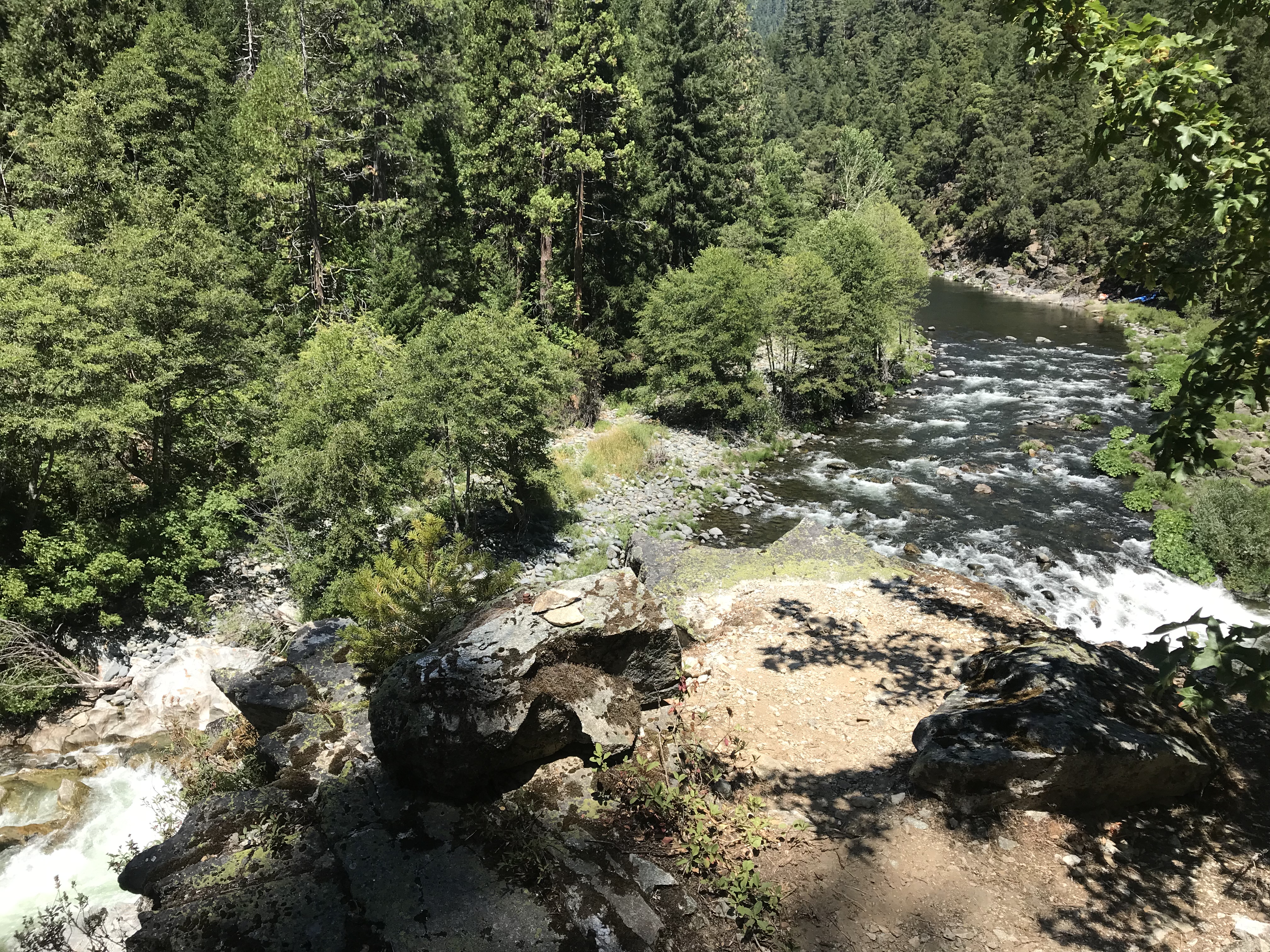 Lång mycket varm vandring utför ner till Feather river fork. Matrix var redan där. Jag hittade en fin plats vid strandkanten vid några runda stenar där vattnet var lugnt. Jag tvättade mina kläder och mig själv i floden. Vattnet var grymt skönt och det svalkade fint i hettan. Jag åt sedan lunch där.