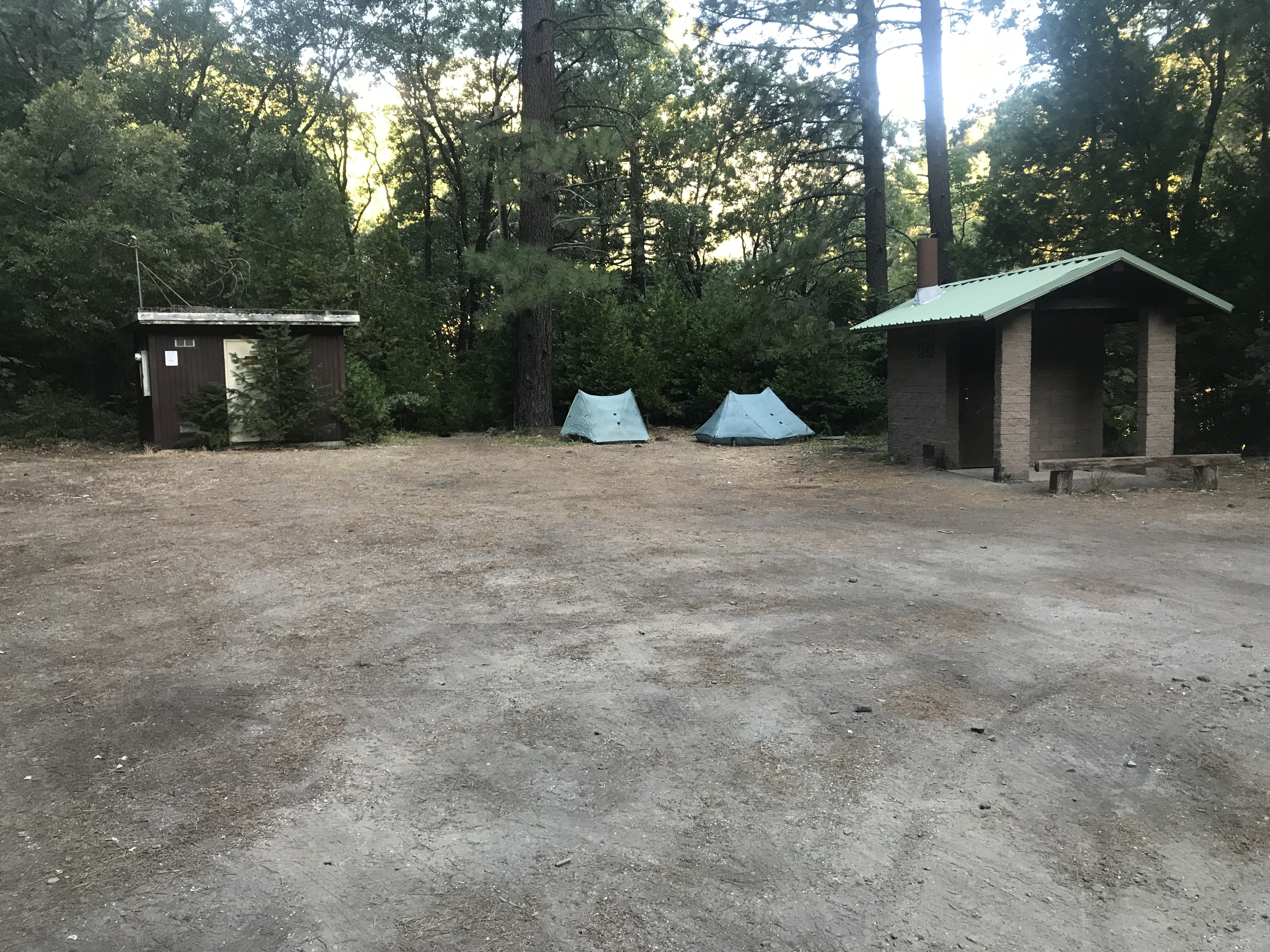 Brant jobbig stigning sedan ned till Campground. Denna campingplats har även bilcampare tillgång till. Fredagkväll och hög ljudvolym. Somnade ändå gott