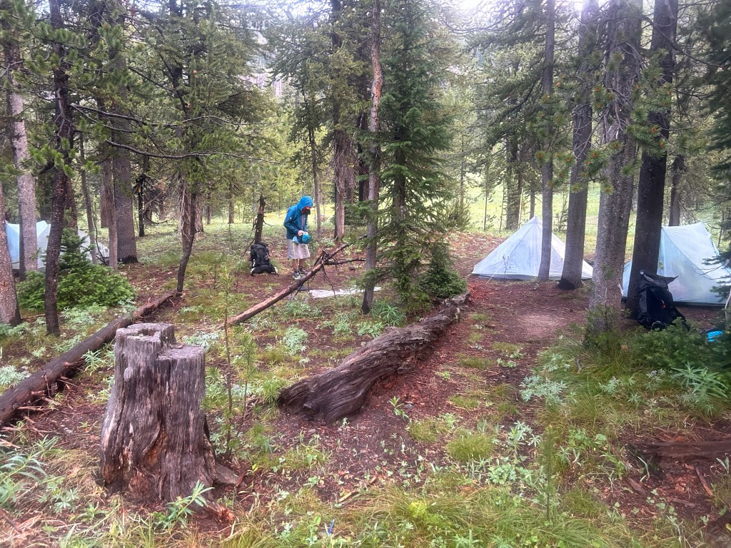 Vi stack iväg på morgonen i lätt regn. Vi hade beslutat os för att gå kort i dag fram till den branta stigningen upp till 10200 fot. Vi gör den imorgon eftersom prognosen ser bättre ut då. Skönt att komma in i tältet då jag är kall och blöt. Lagade lunch i tältet