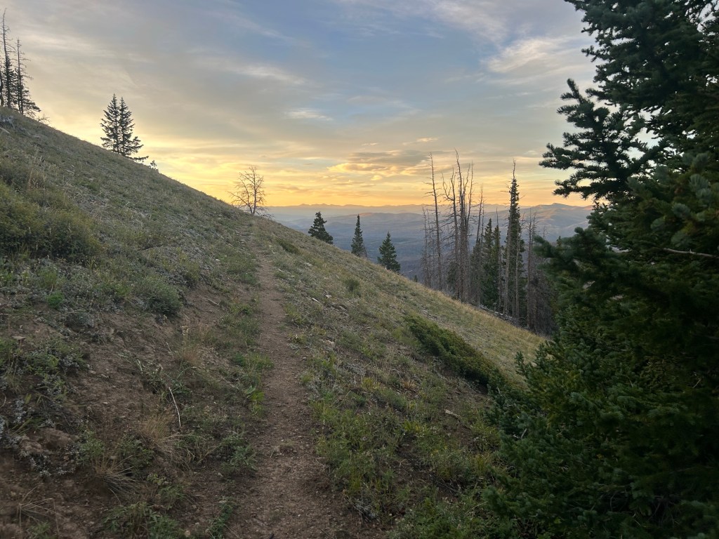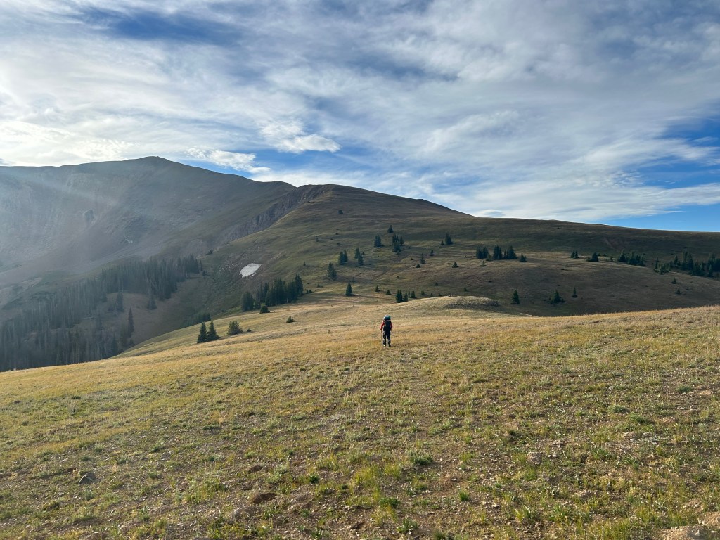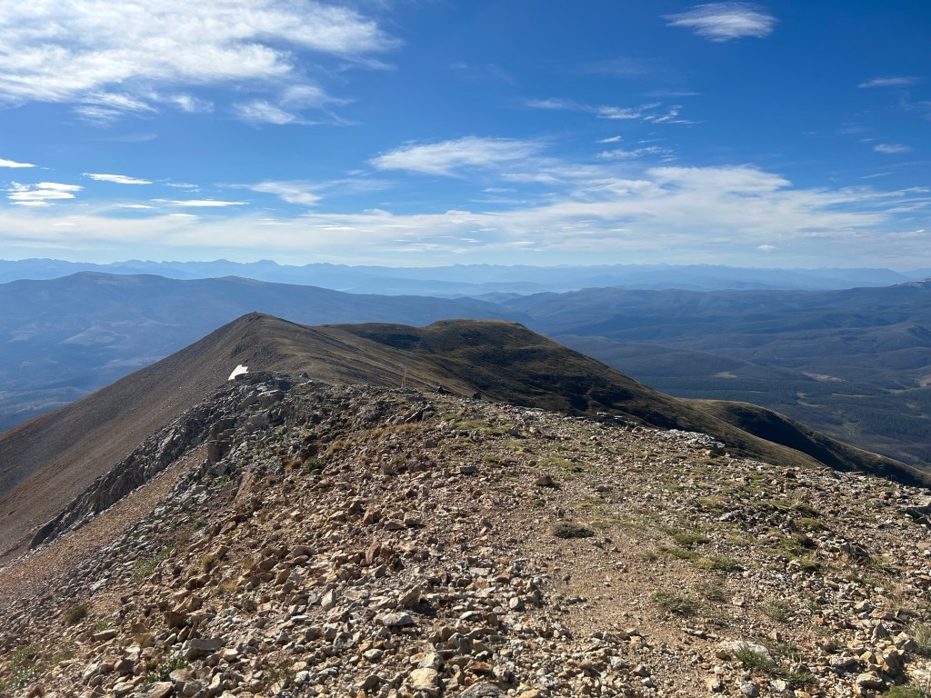 Vandring uppåt med mycket stigning. Sol och underbar utsikt. Vi nådde tillslut toppen av Parkview Mountain på 3755 m höjd. Vi satt sedan på toppen ett tag och vilade och njöt av utsikten. Vi träffade en del jägare som jagar Elk med pil och båge.