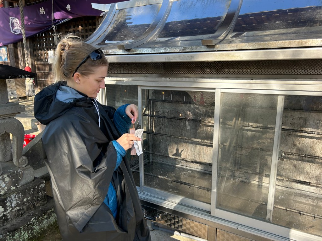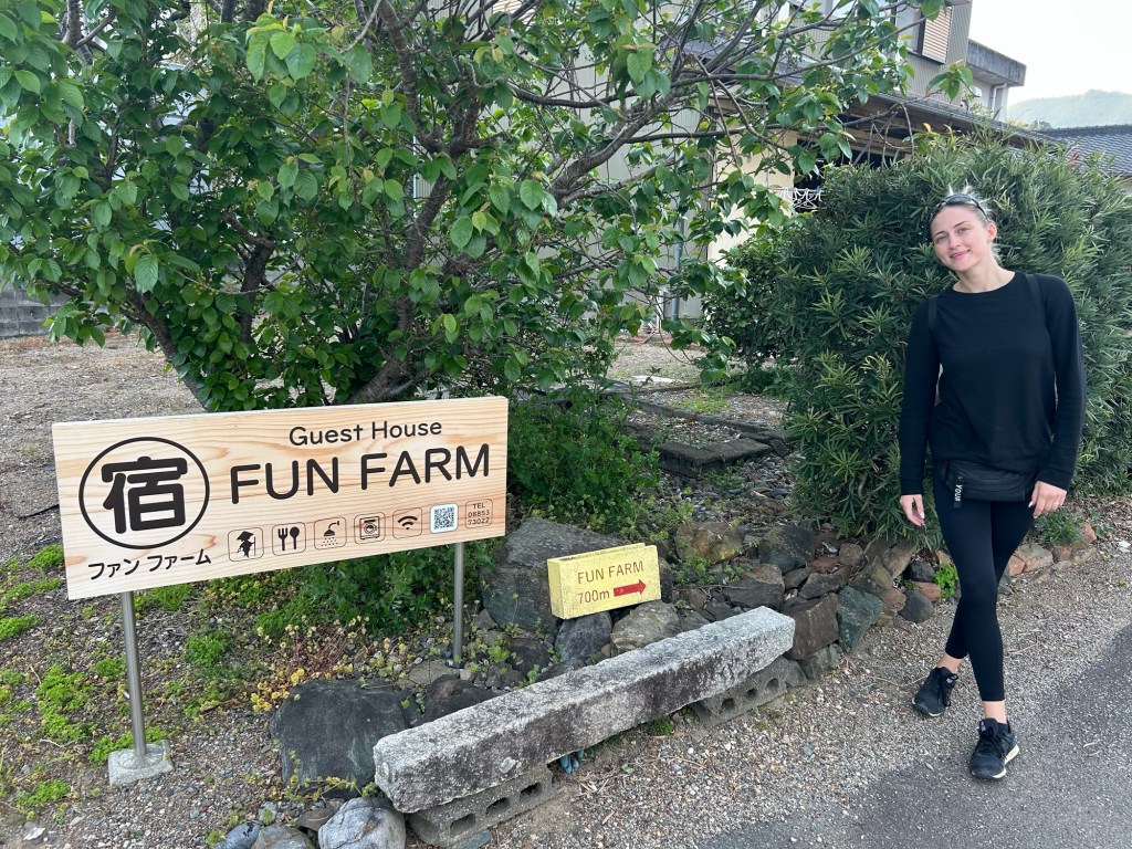 Vid 16:30 kom vi fram till vårt boende. En kvinna tog emot oss. Hon pratade bara japanska men log med hela sitt ansikte. Med hjälp av en översättningsapp förstod vi var duschen fanns, var vi skulle sova, hur man sa “tack” på rätt sätt.
