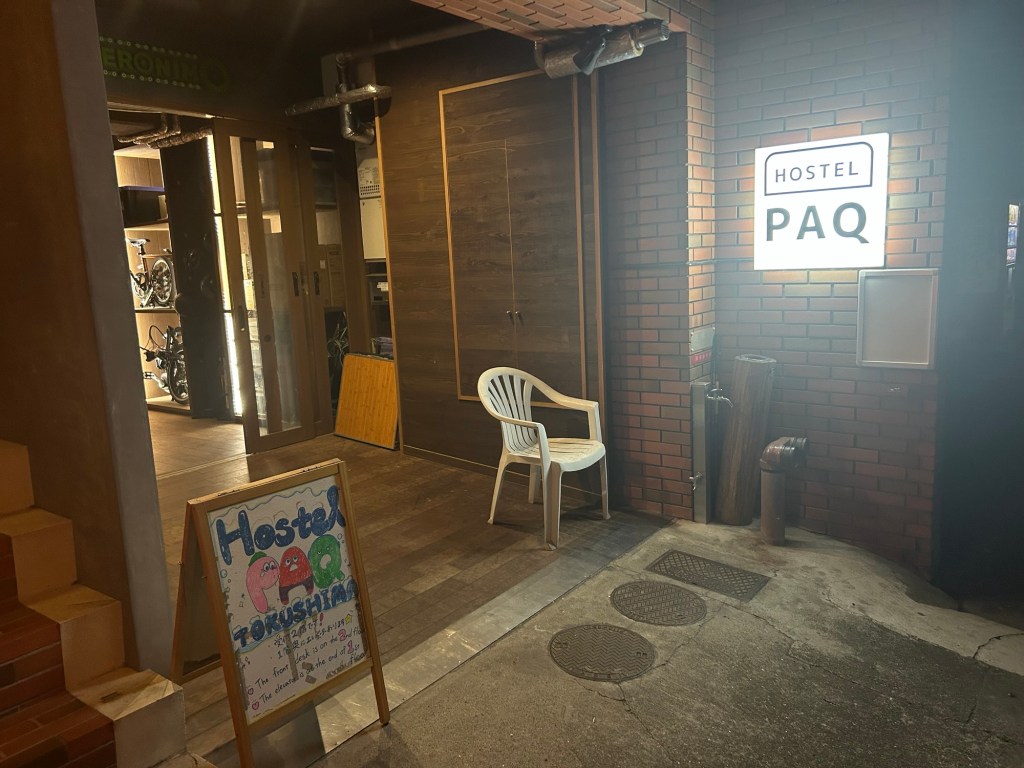 Efter vi besökte dagens sista tempel gick vi ned till tågstationen i Ko och tog tåget till Tokushima. Vi ska bo på Hostel PAQ igen. Denna gång i sovsal som har små sovlådor byggda i Plywood som man kryper in i och sover.