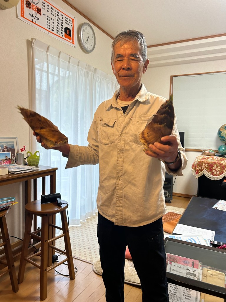 Klockan på ring kl 6:20. Frukost kl 6:30. Vår värd ropade högt kl 6:25. Breakfast! Breakfast! Japansk frukost sedan med ris och misosoppa samt bambuskott. Den japanska värdmannen kom stol in och visade två stora bambuskott. Först nu förstod vi vad vi sett igår växande i bambuskogen. Det är bambuskott!