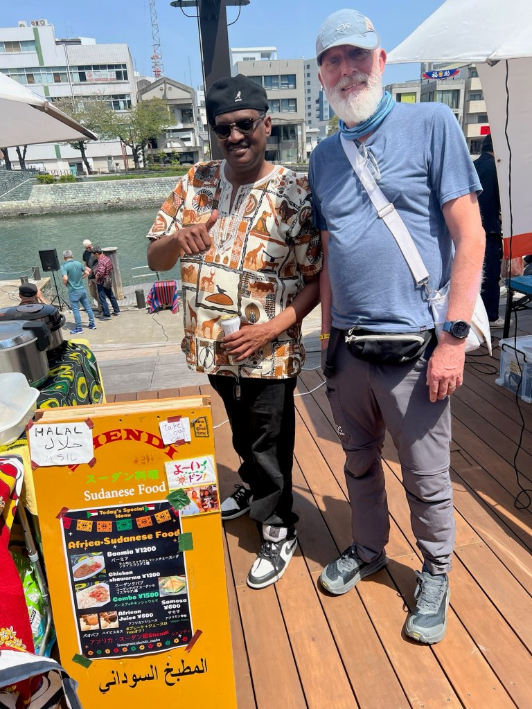 Sedan gick vi ned till festivalområdet. Det består av flera områden. Ett med internationell mat och uppträdande. Ett annat med traditionell läktare och traditionell dans från Tokushima. Vi kollade lite dans och gick igenom områdena och åt lite mat. Vi gick sedan till det internationella området och tog först en kall öl. Vilket var gott i värmen. Därefter åt vi sudanesisk mat och sedan tacos tillagade av en kille från Mexico. Riktigt gott.