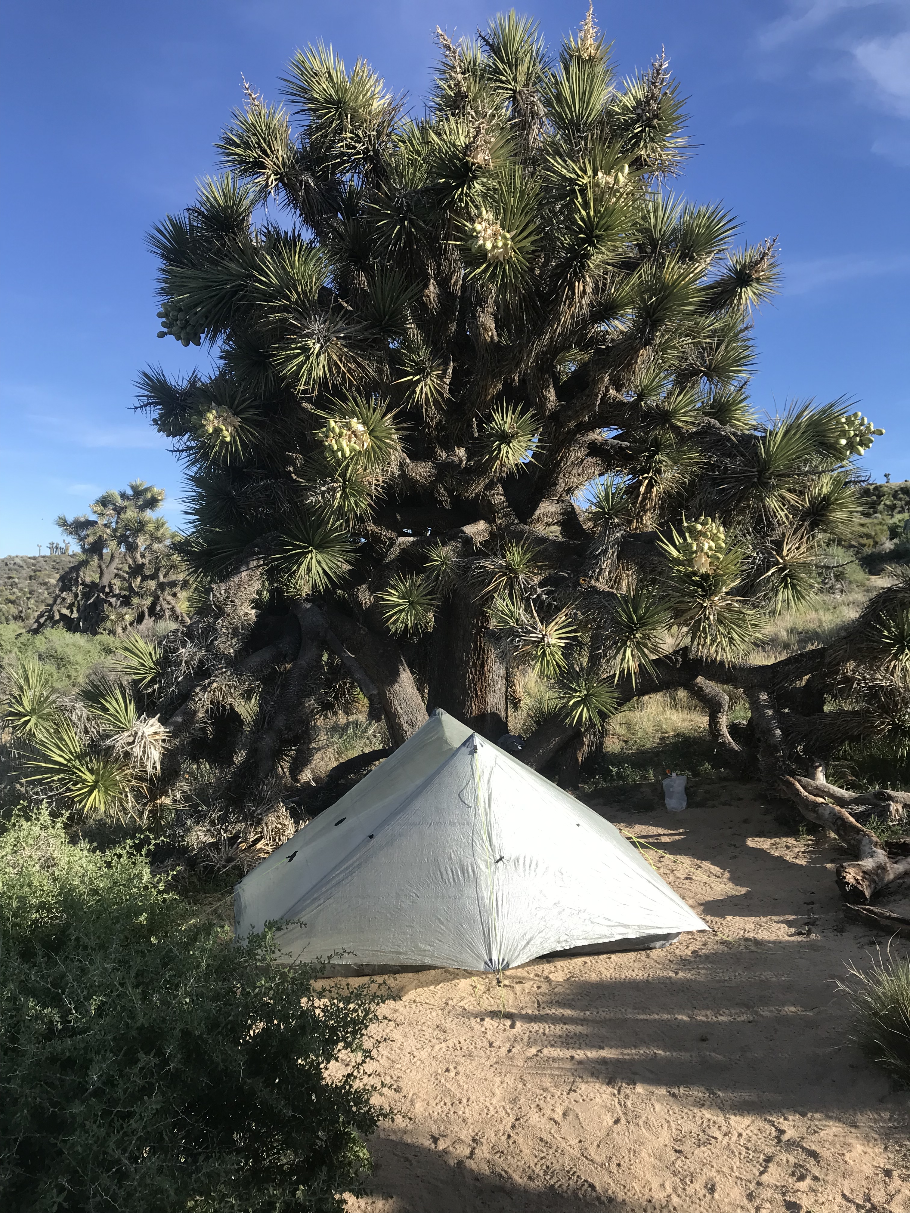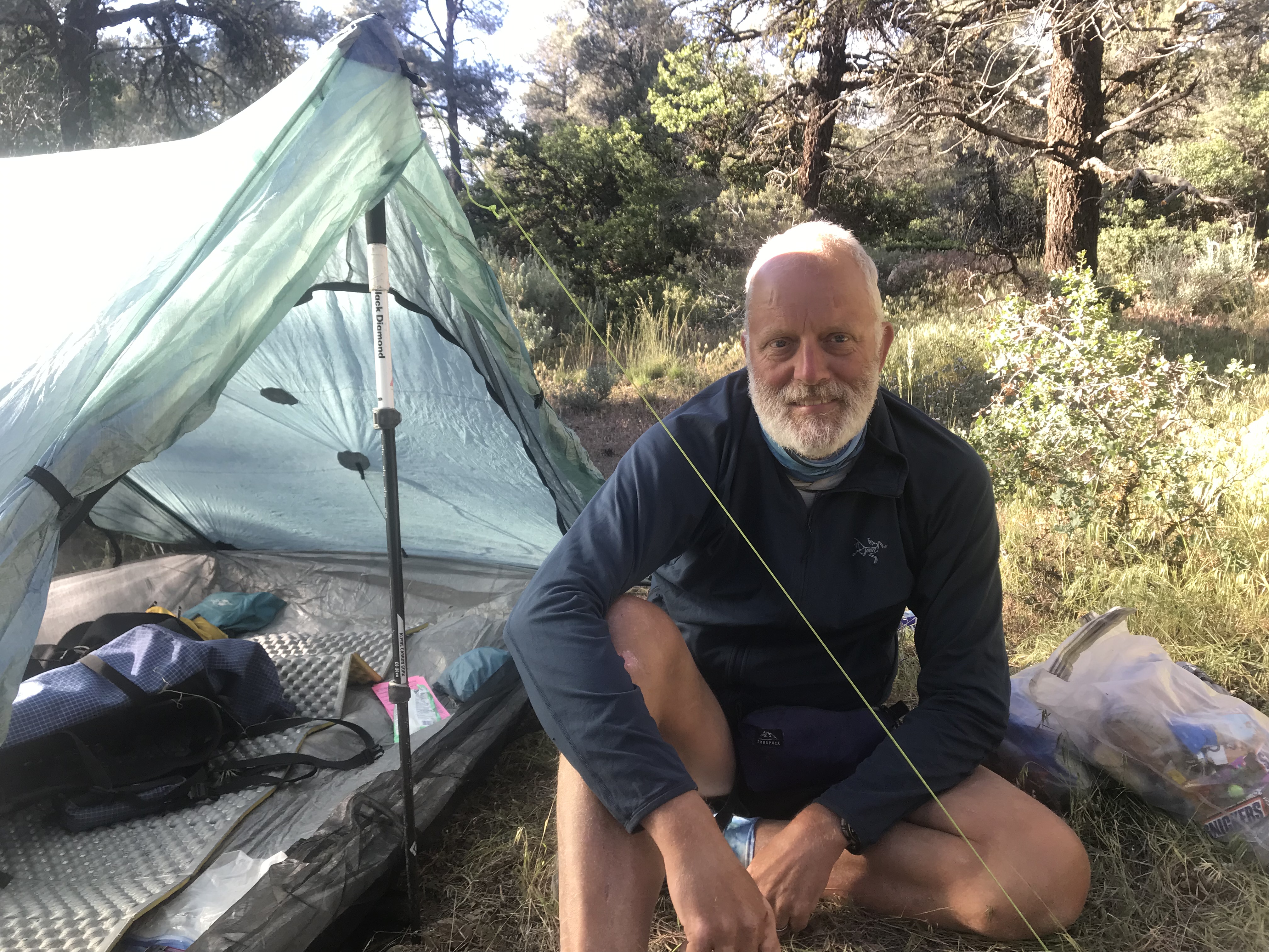 Jag kom fram till en bäck. Var mycket trött i värmen. Det var 4 miles klättring kvar till toppen där det fanns en tältplats. Efter att ha vilat en stund och kylt ned mig så gick det lättare att fortsätta. Jag tog mig upp till den mycket fina campingplatsen med utsikt mot Sawtooth peak. Ron hade paxat en plats åt mig. Detta var en av dom tyngsta dagarna hittills på PCT