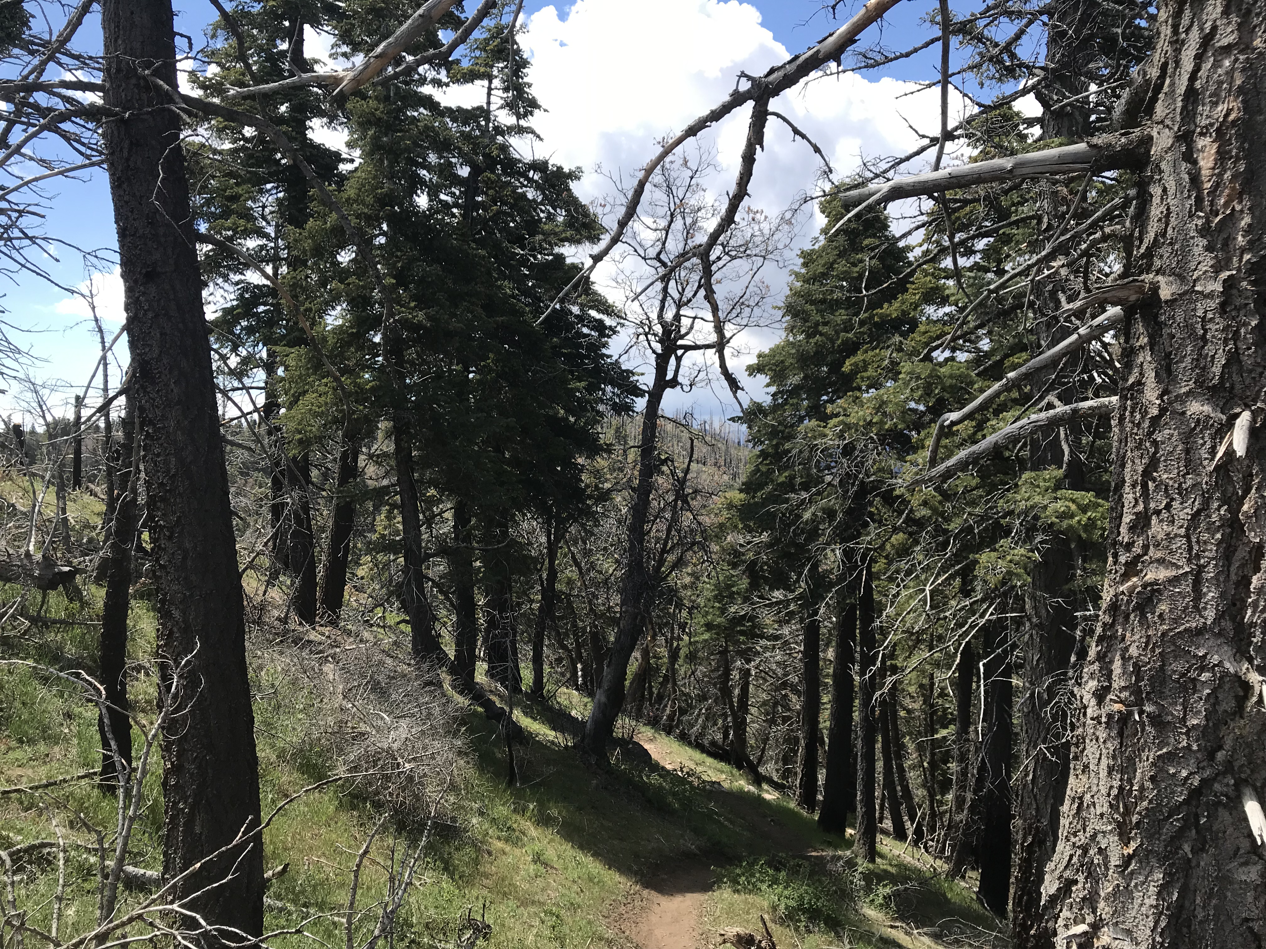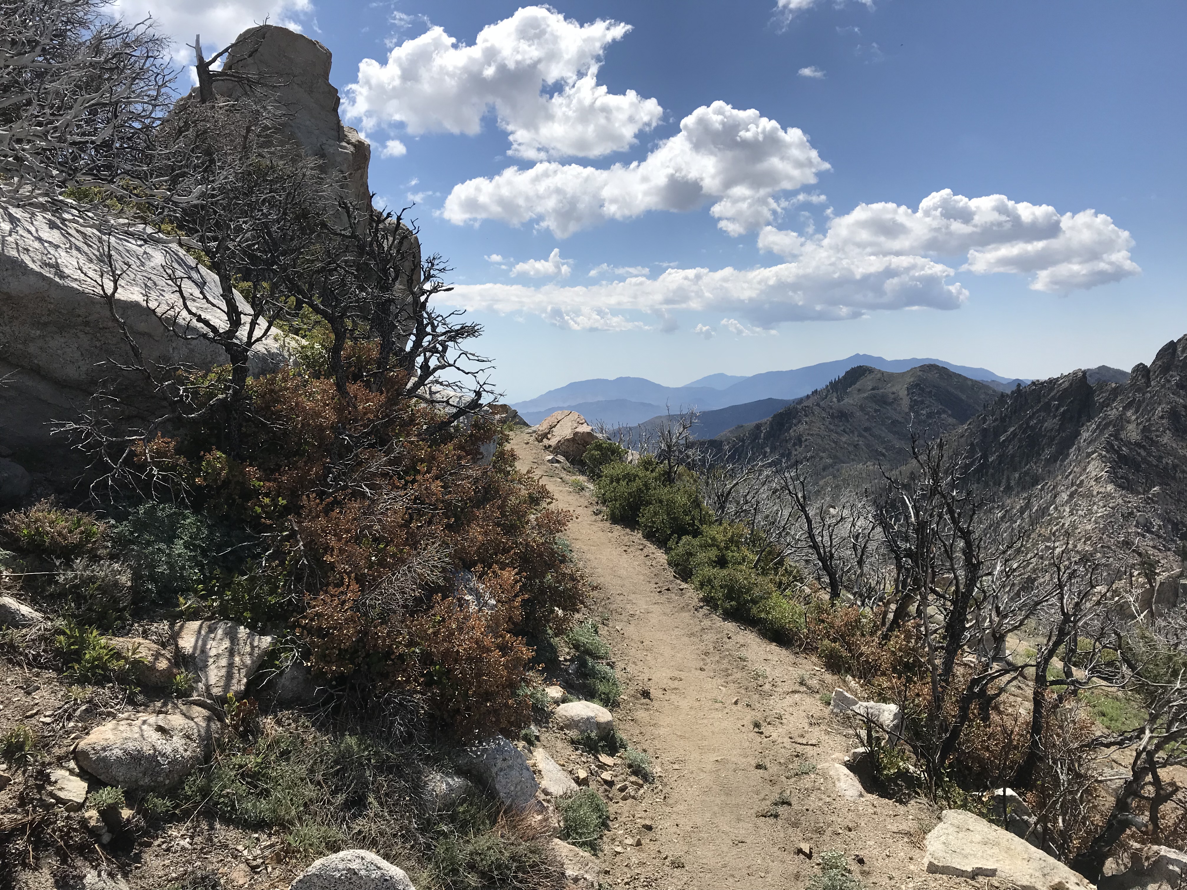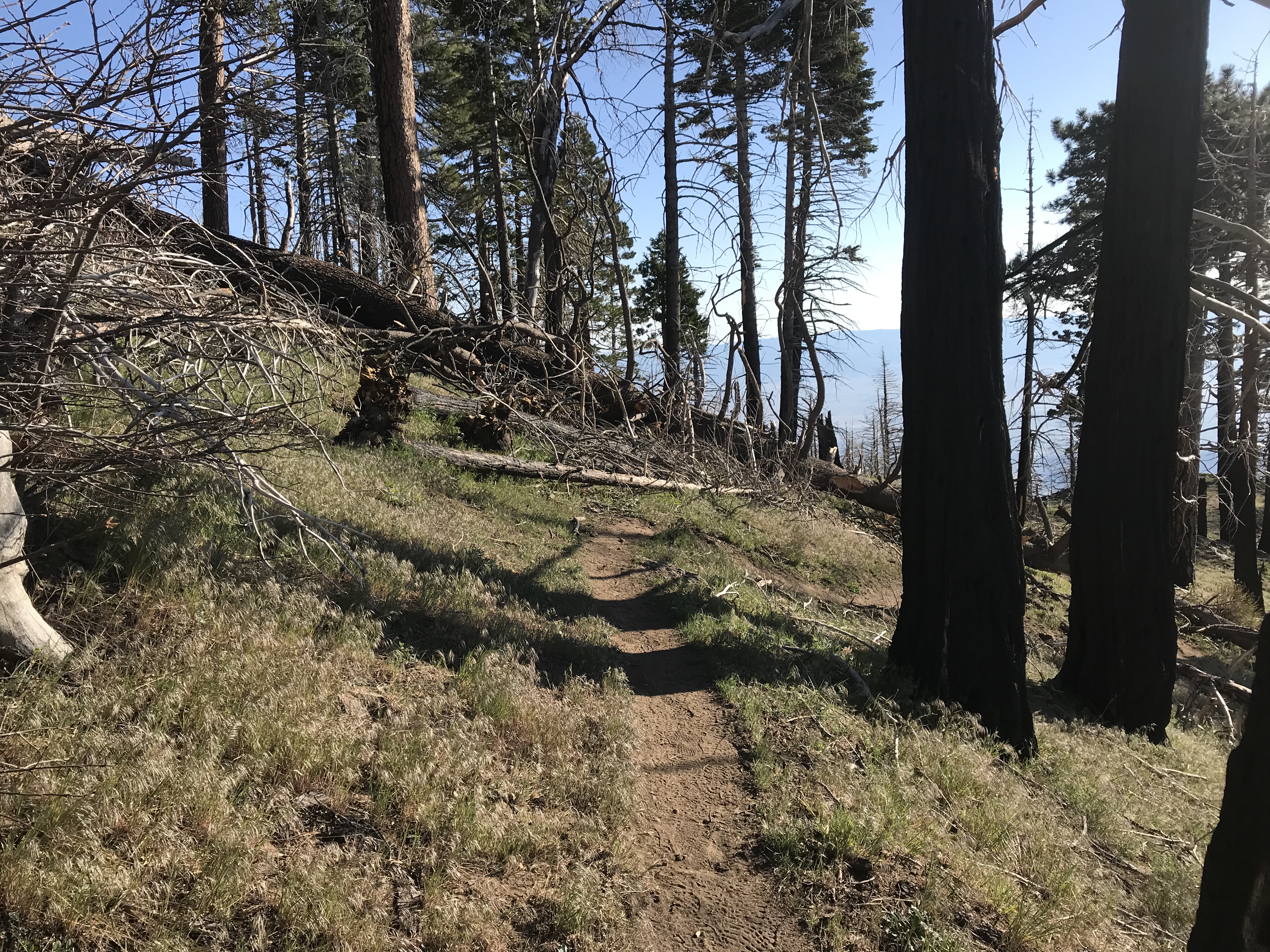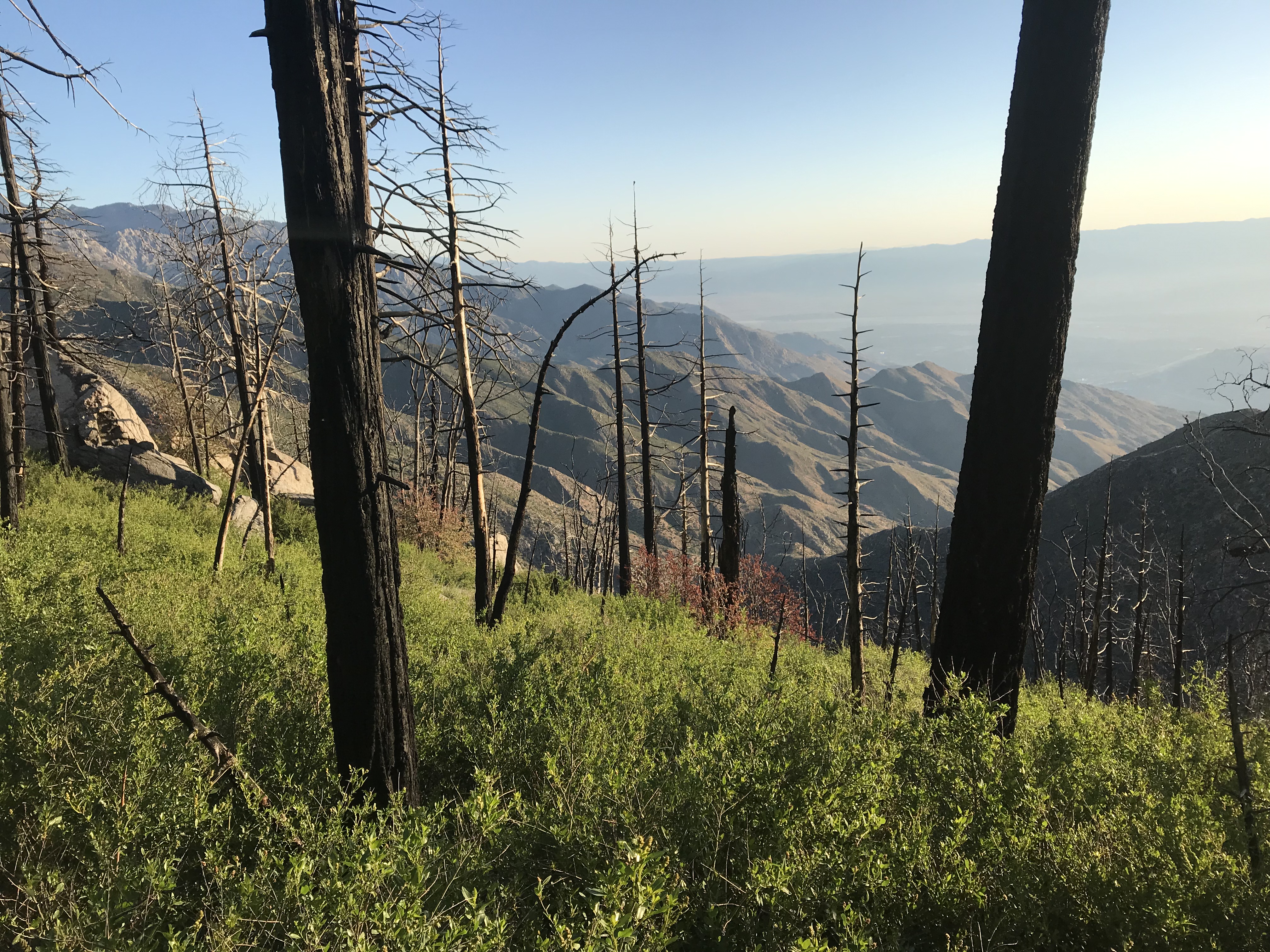 Jag vandrar växlevis med Ned från Minnesota och Mustachio (Kenny), 21-årig Amerikan från Norge som pratar flytande Norska. Fantastiska vyer med stora områden med brända träd. Denna del av PCT har varit avstängd under senaste åren pga bränderna och nedfallna träd etc.