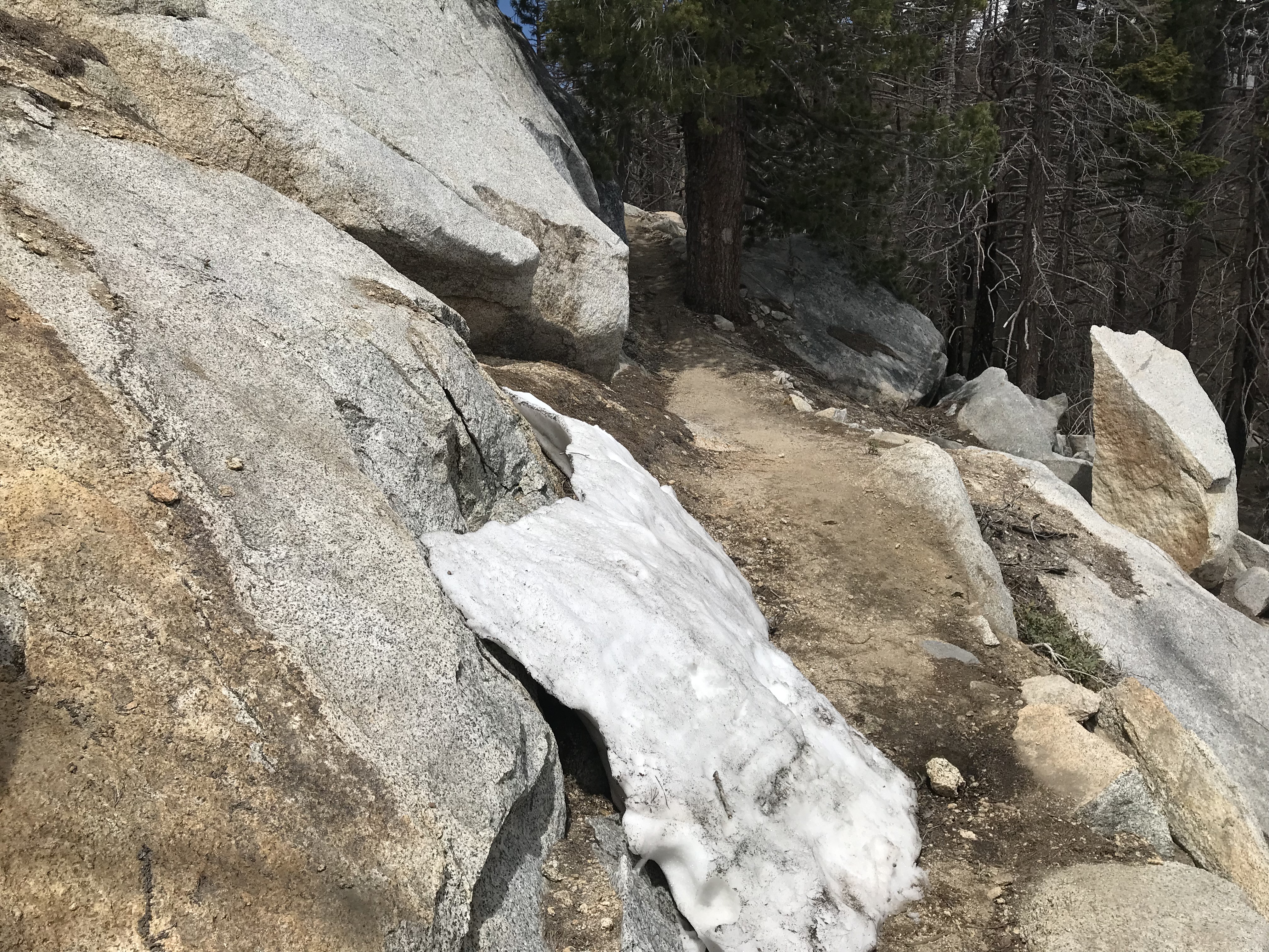 Jag träffar på snö på leden för första gången. Men kanske inte konstigt då jag är uppe på 2600 m höjd. Jag når Saddle Junction och säger hej då till Mustachio som ska vidare mot berget San Jacintos topp.