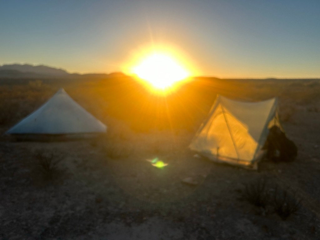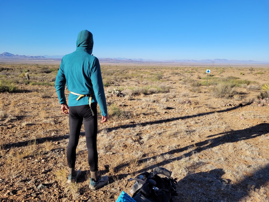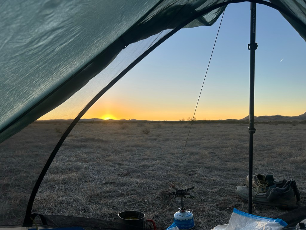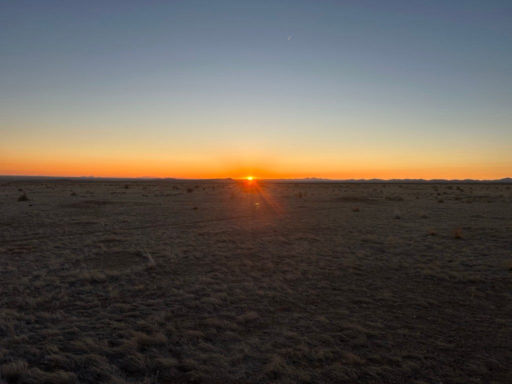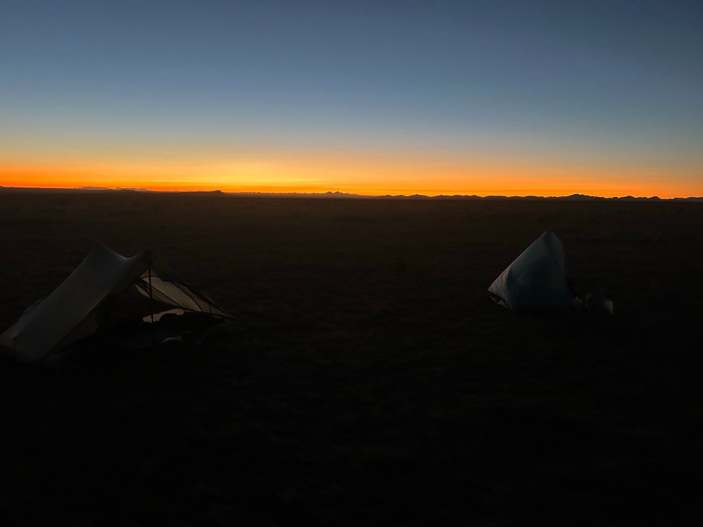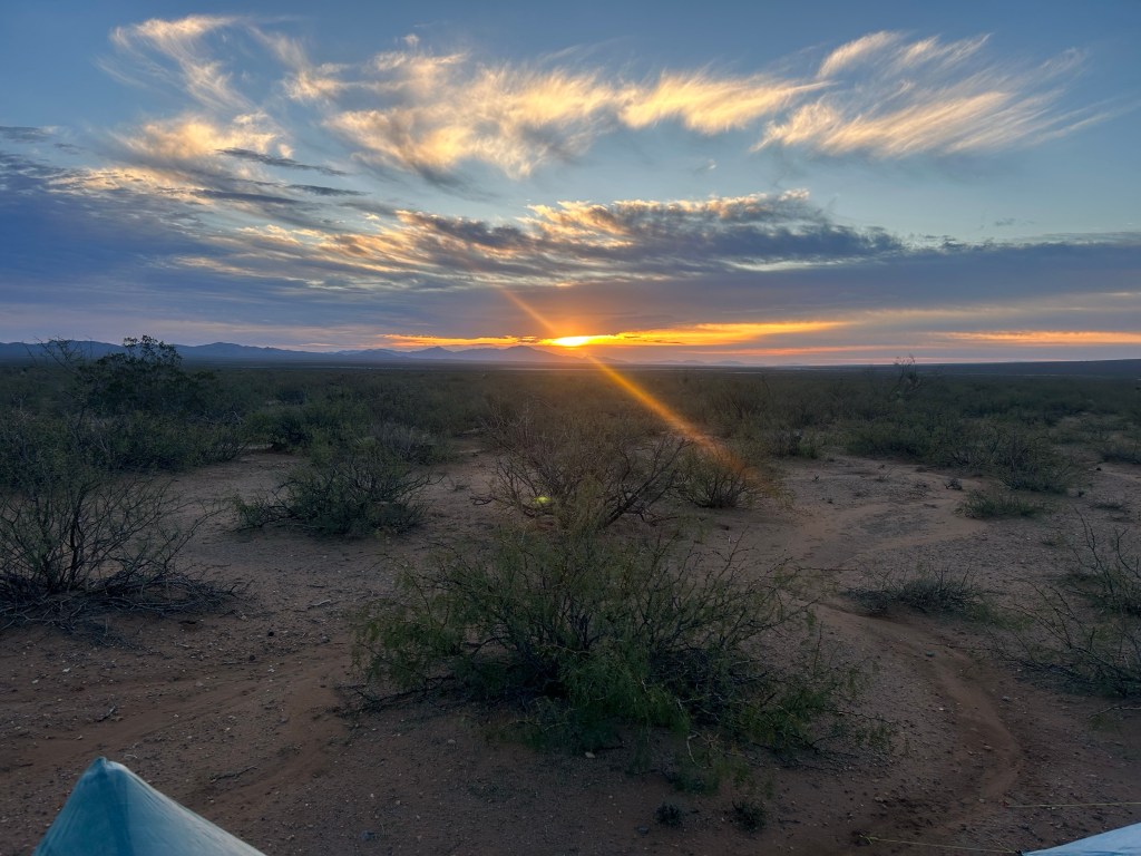 Lugn morgon. Njöt av ännu en New Mexico soluppgång. Sedan vandring ned till CDT southern terminus monument.