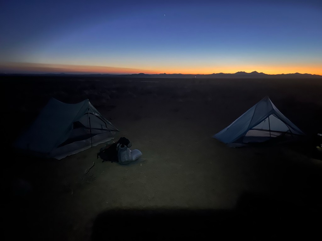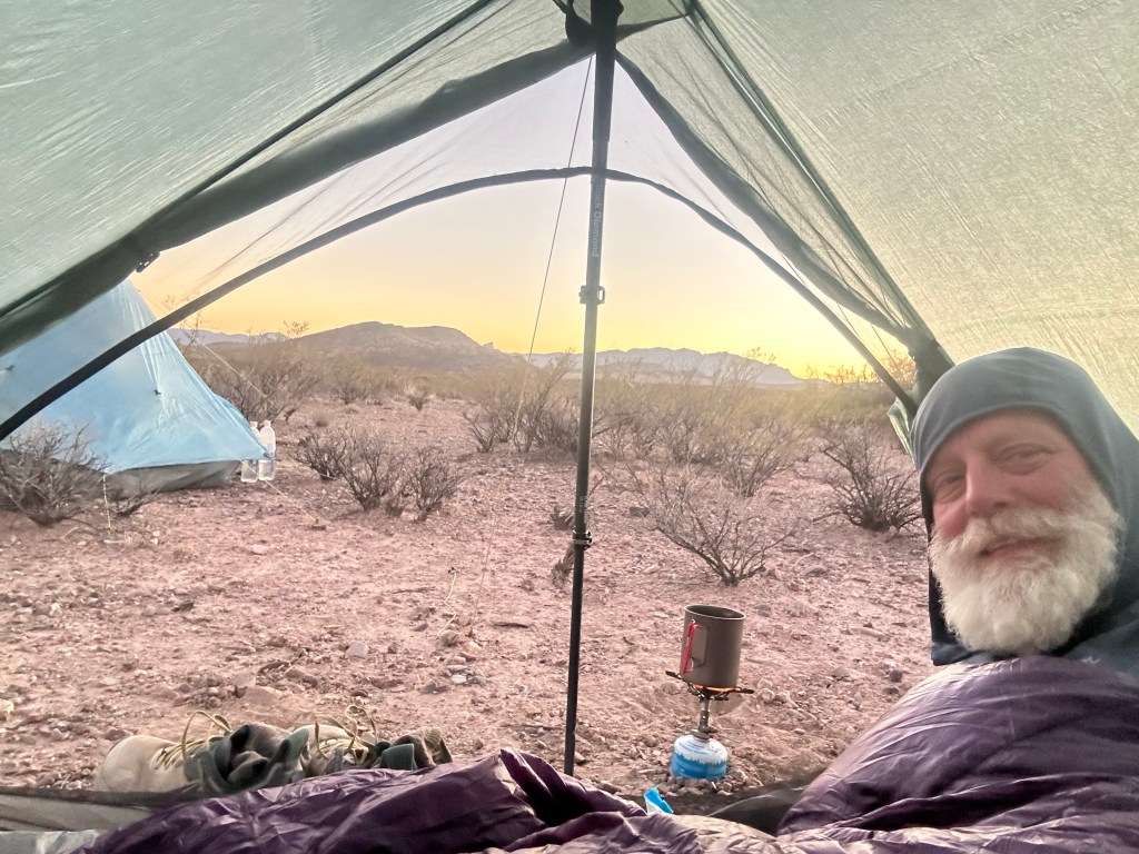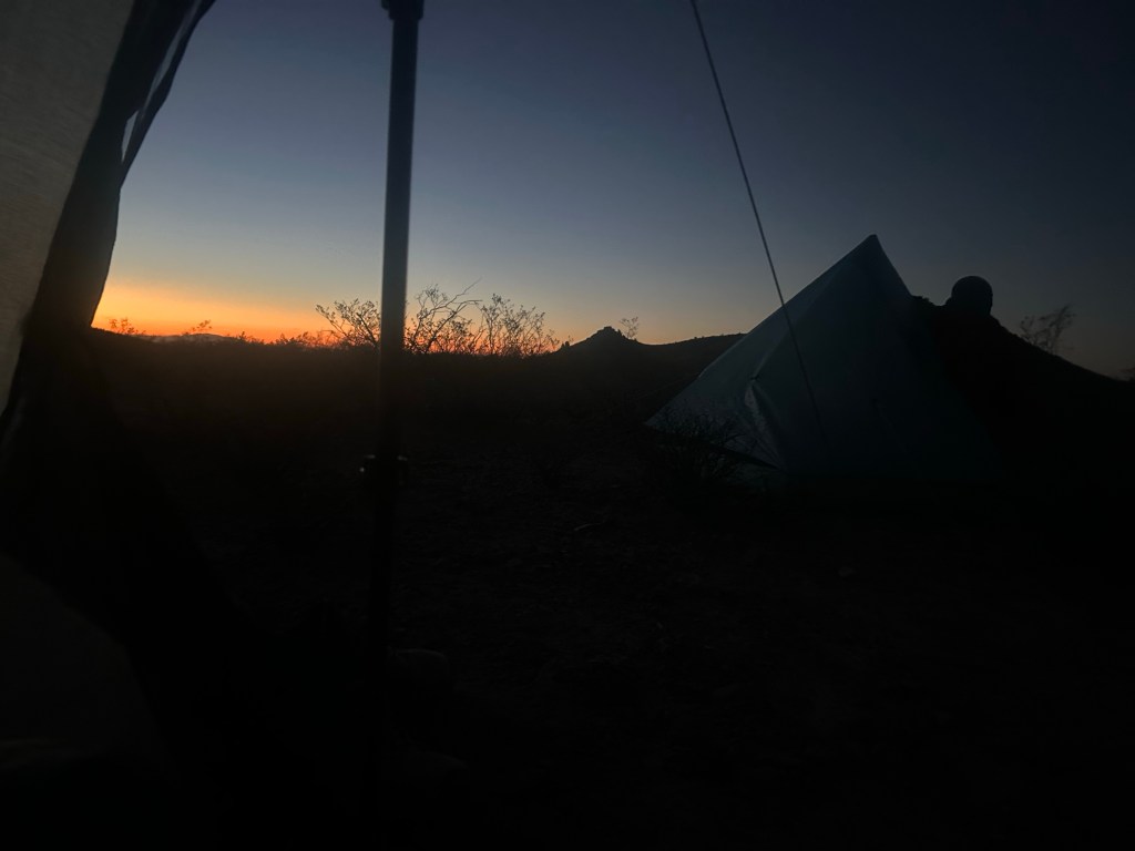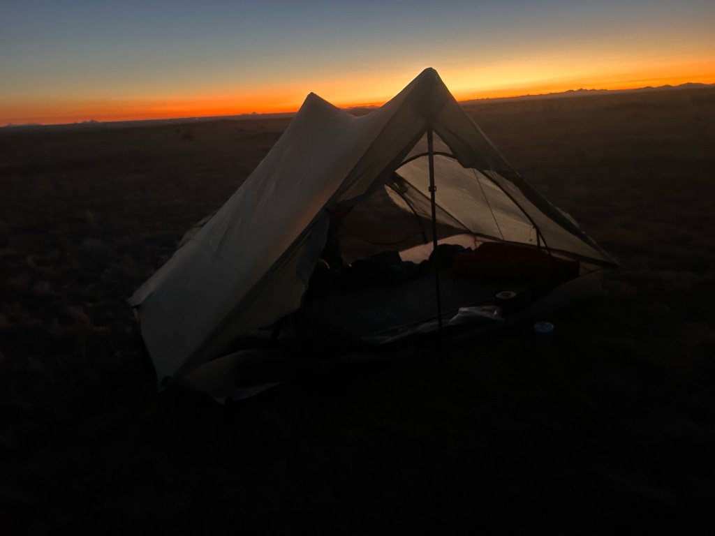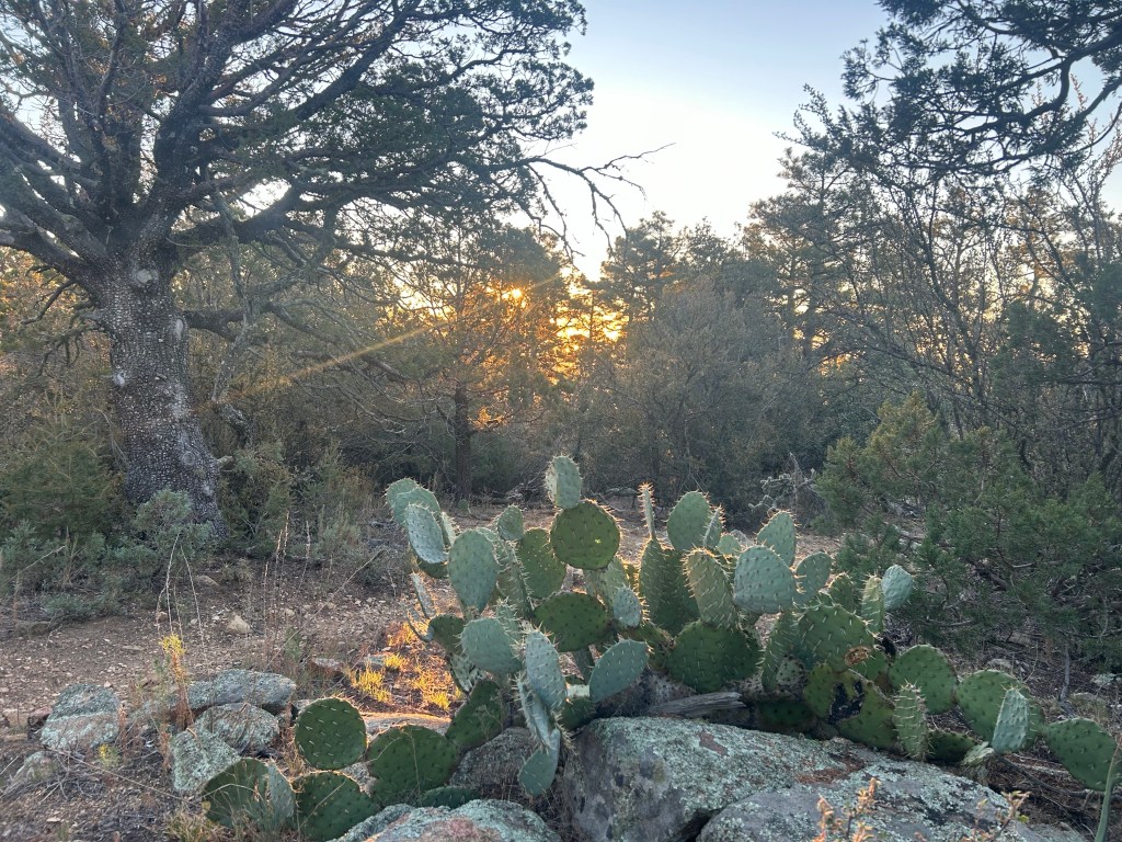 Lugn morgon. Njöt av ännu en New Mexico soluppgång. Sedan vandring ned till CDT southern terminus monument.
