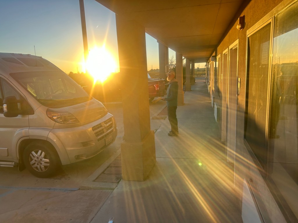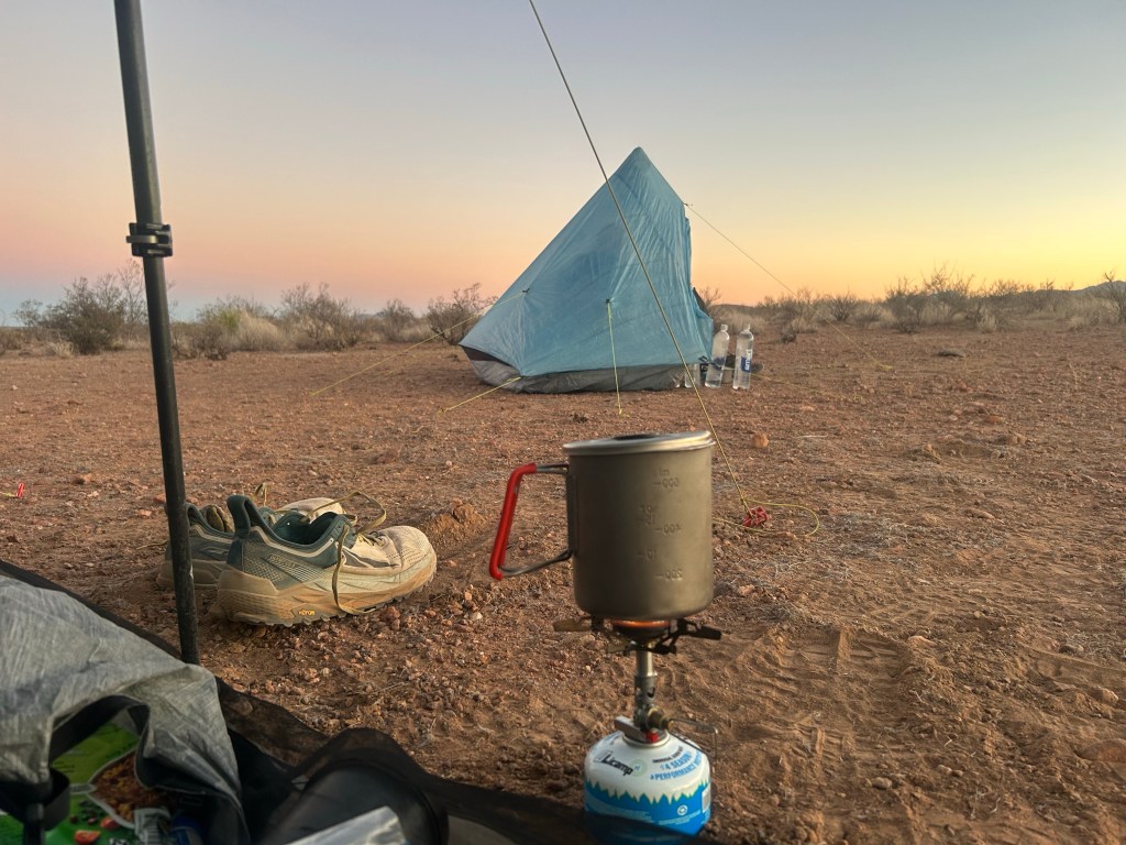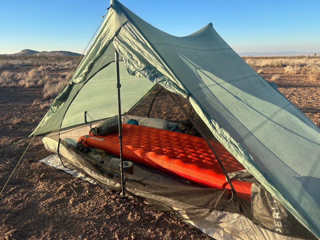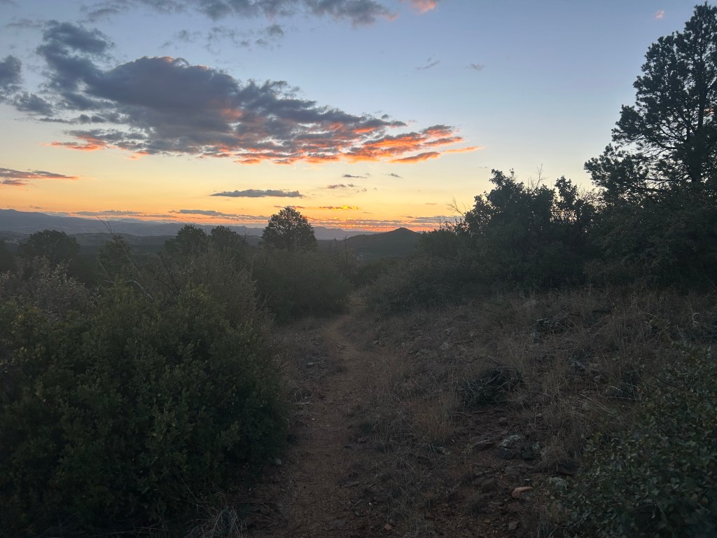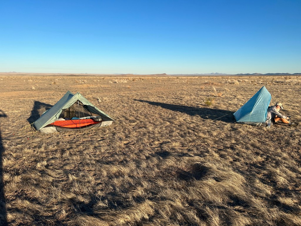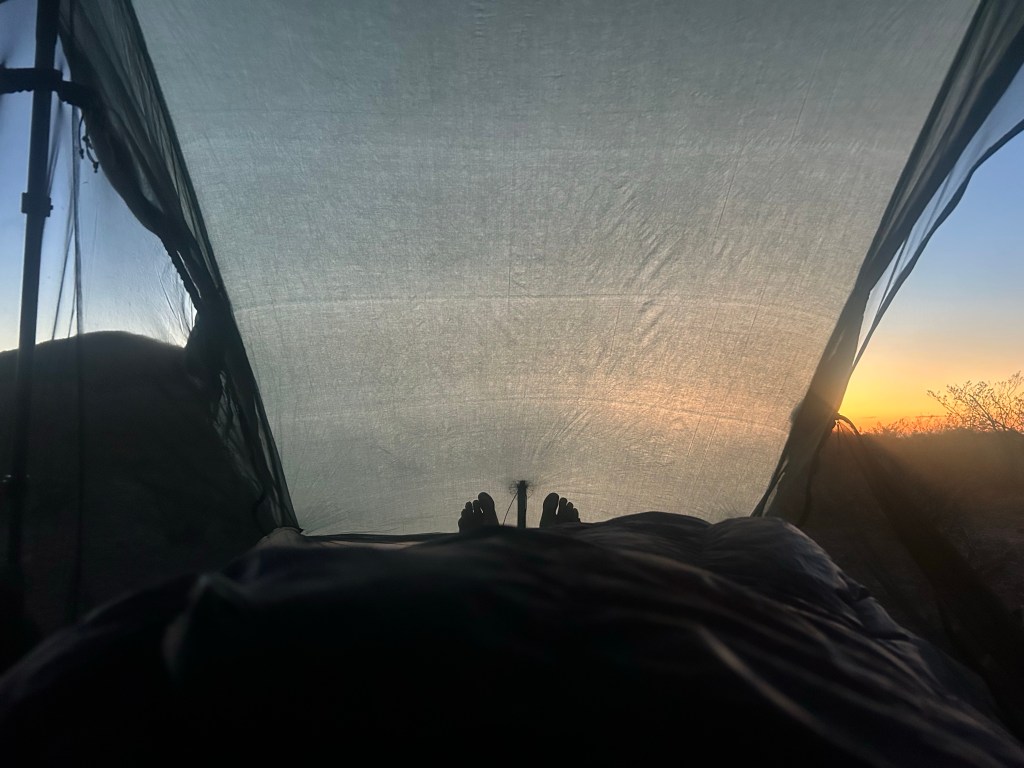 Lugn morgon. Njöt av ännu en New Mexico soluppgång. Sedan vandring ned till CDT southern terminus monument.