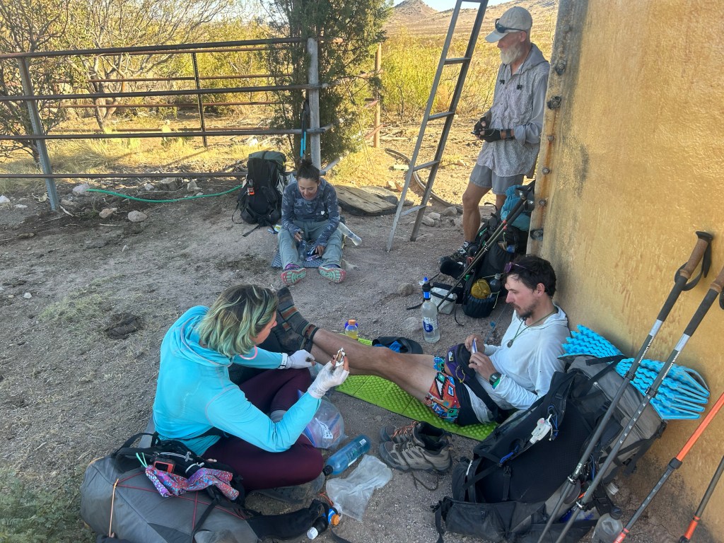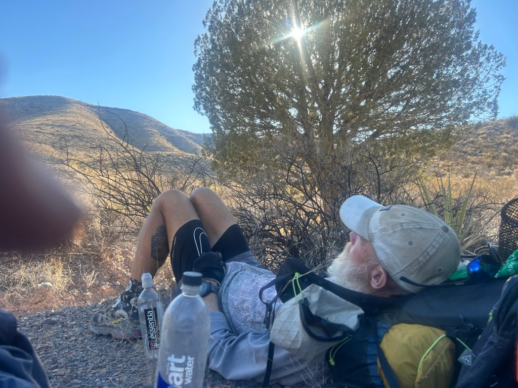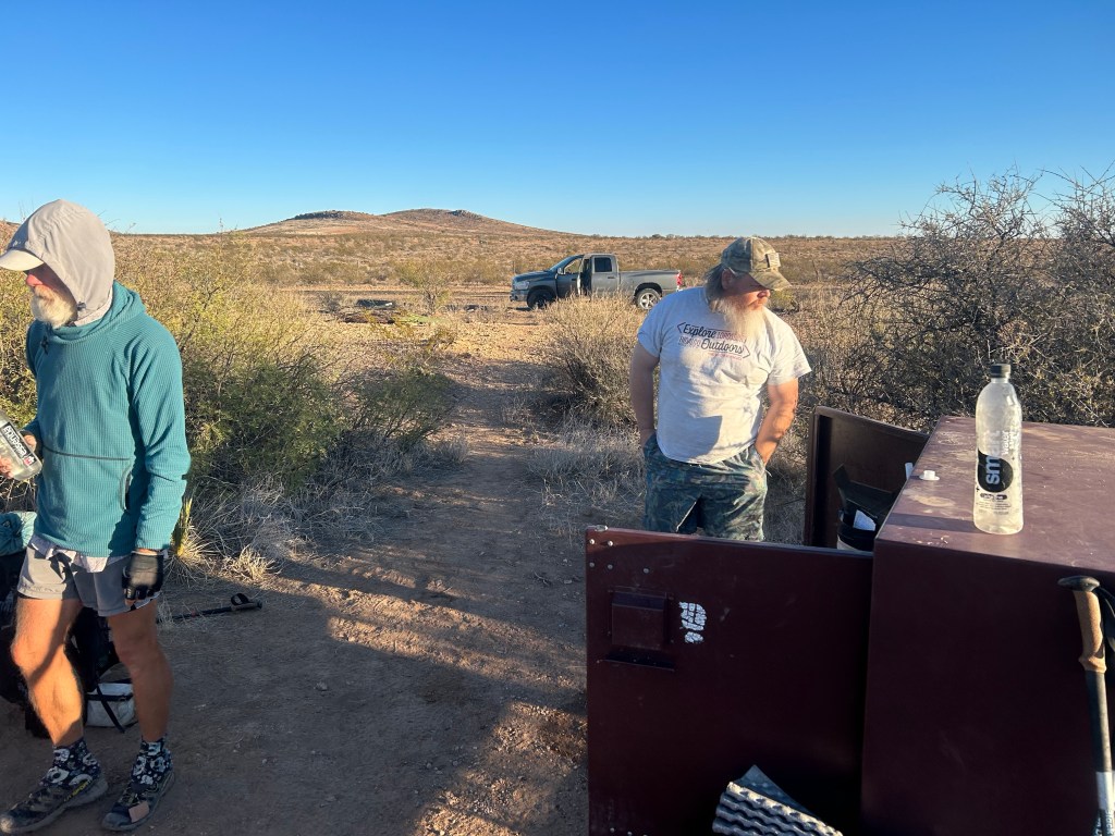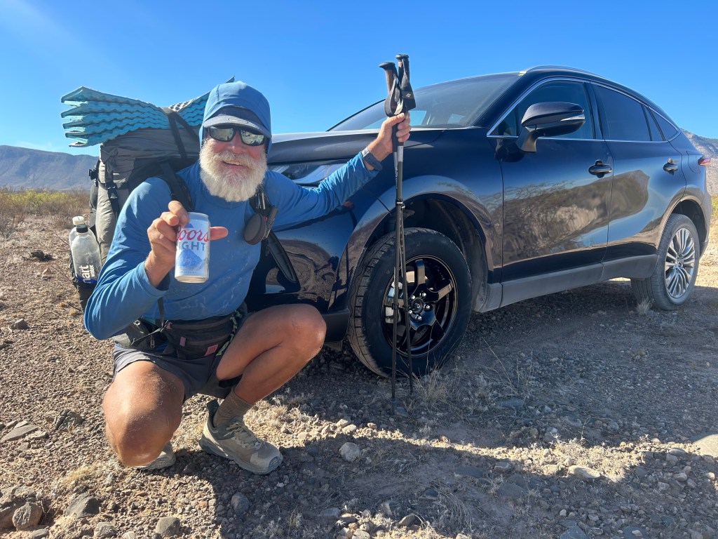 Vi firade med den tequila som jag burit med mig. Därefter väntan på vår skjuts som kommer kl 13. Sedan kom en hiker till. P.I. Vi spelade sedan kort för att fördriva tiden. Två hikers till dök upp. Bovi och Lightfoot.