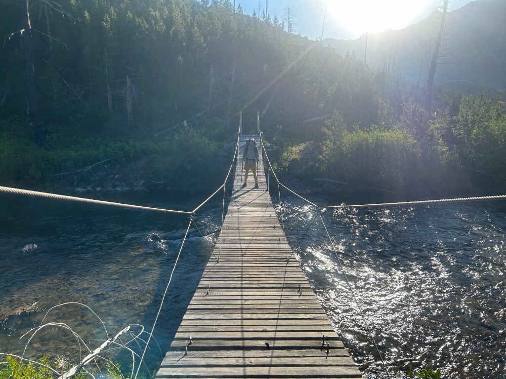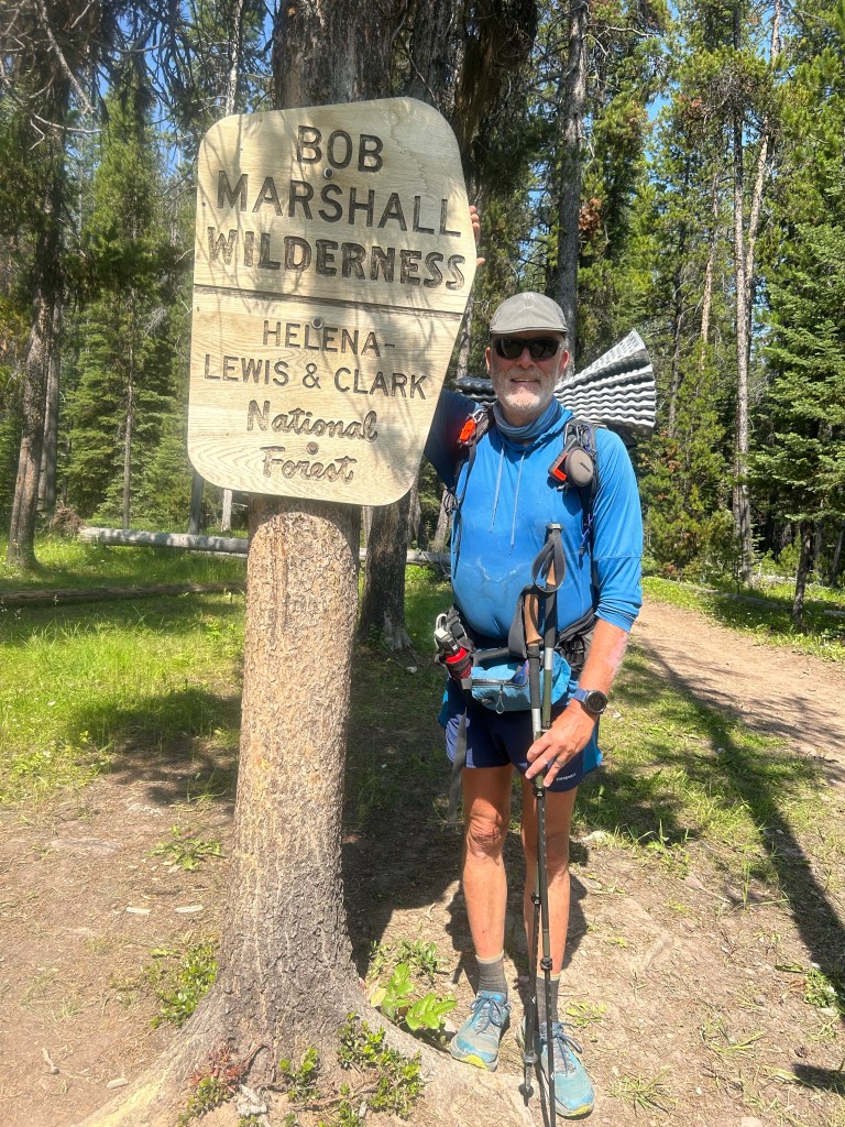 Kom iväg vid kl 6:20. Kylig morgon och vandring genom skog lik Sverige. Vi kom sedan till gränsen och början av Bob Marshal wilderness. Vandring sedan genom nedbrunnen skog. Det blev sedan allt mer stekhett och ingen skugga i den nedbrinna skogen