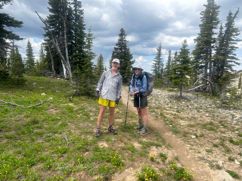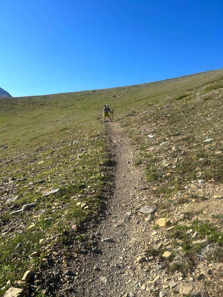 Efter ett tag började det luta mer och mer, med branta Switchbacks. Vi mötte två CDT hikers som var på väg åt andra hållet. White noise och Ripp. Tillslut nådde vi toppen av Tripple Divide pass på 2400m.