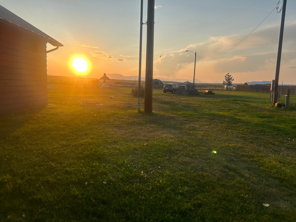 Swede och jag liftade sedan ner till byn East Glacier med ett par från Mississippi i en stor husbil. Vi hoppade av vid vårt hostel. Duschade och satte upp tältet.