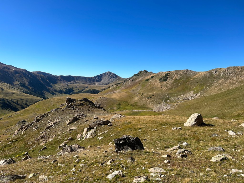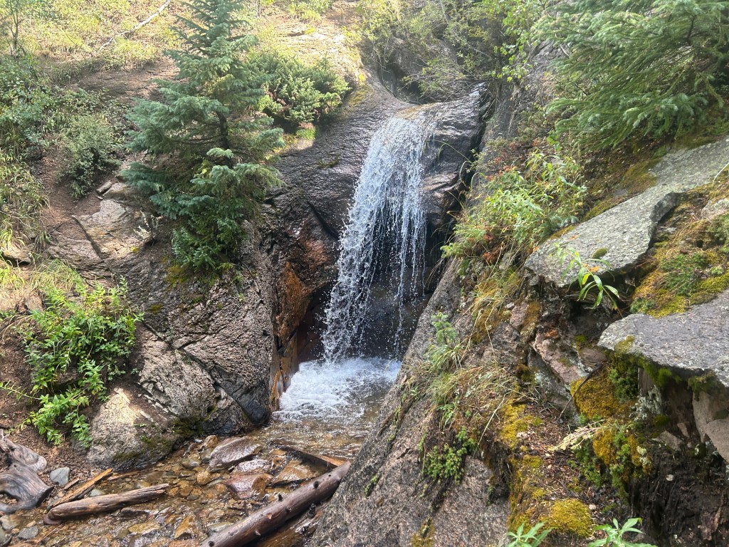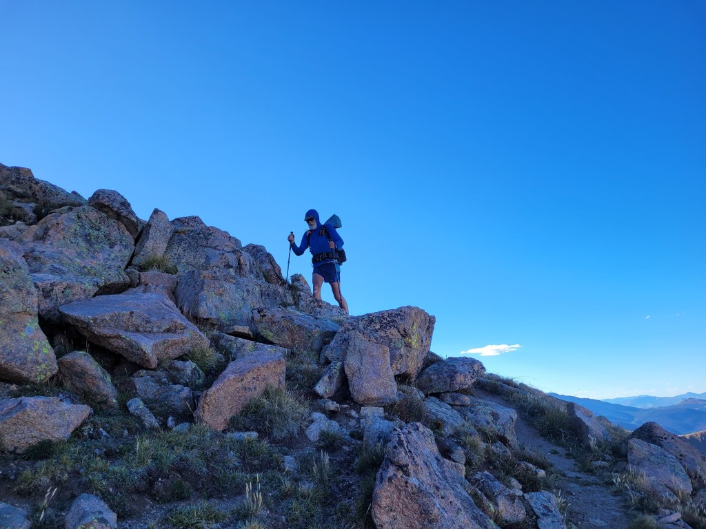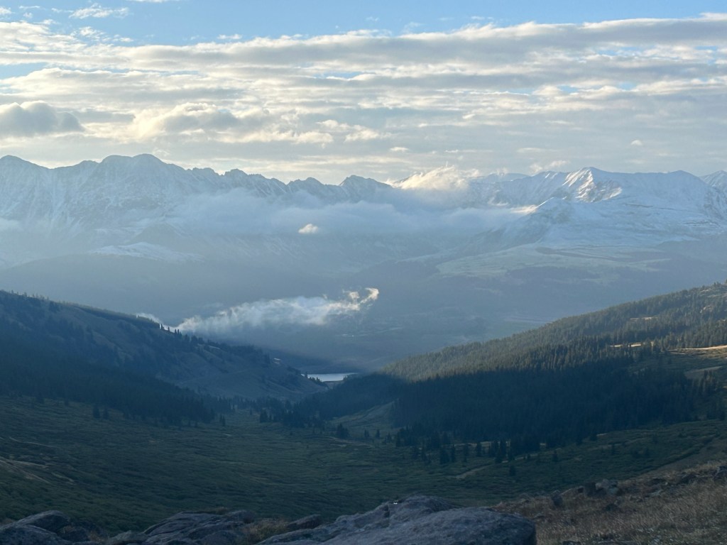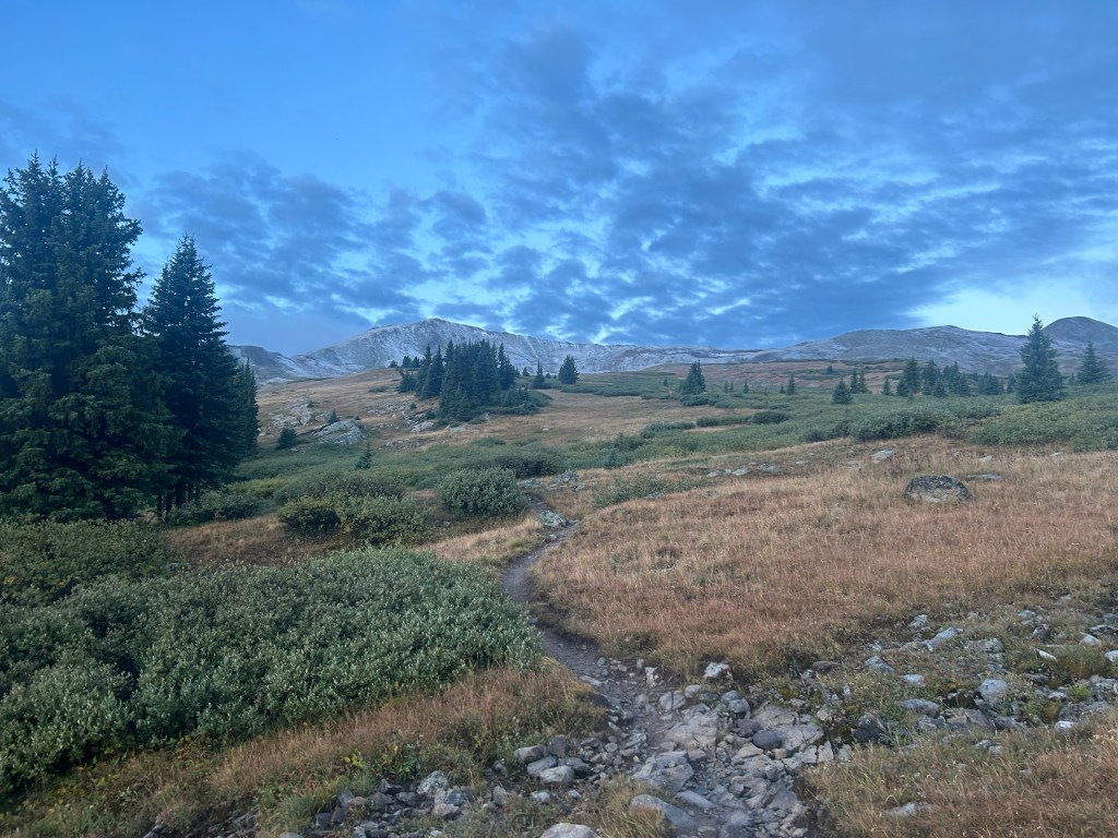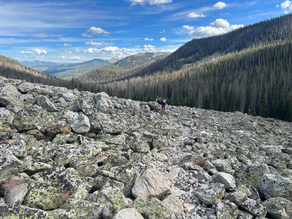 Vi började vandra strax efter 8. Stigning uppåt på snöig och isig trail i skog så solen värmde inte. Vandring blev lättare sedan när vi nådde över trädgränsen. Över Tincup pass. Sedan ner efter en gammal järnvägsbank. Upp sedan till nästa bergspass. Vi tog lunch innan sista klättringen vid en fin sjö.