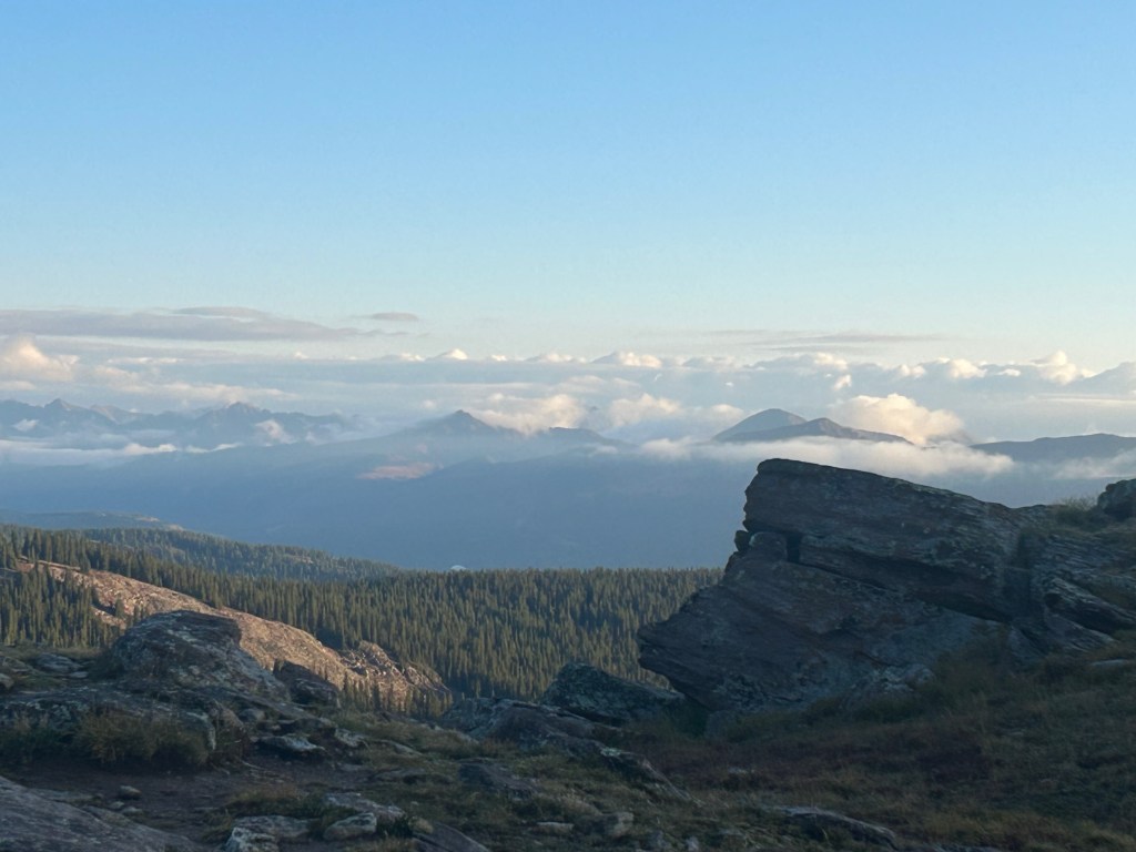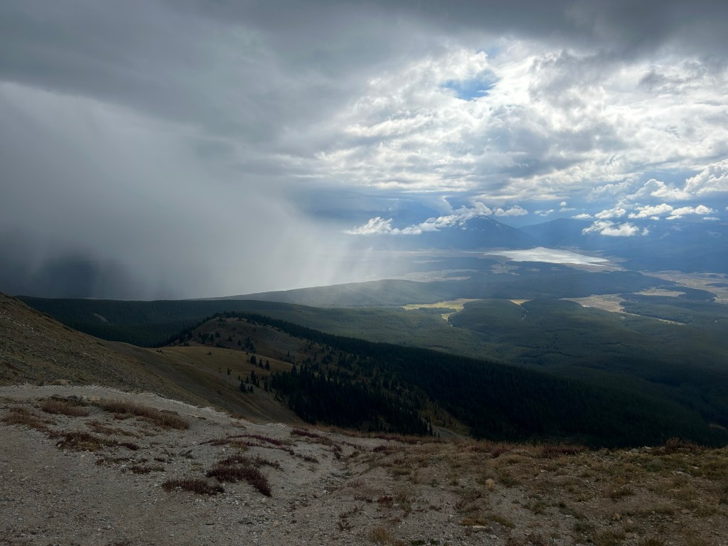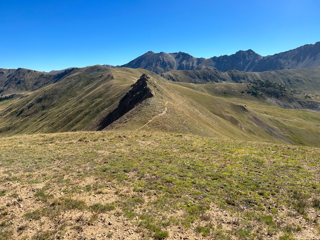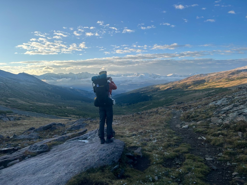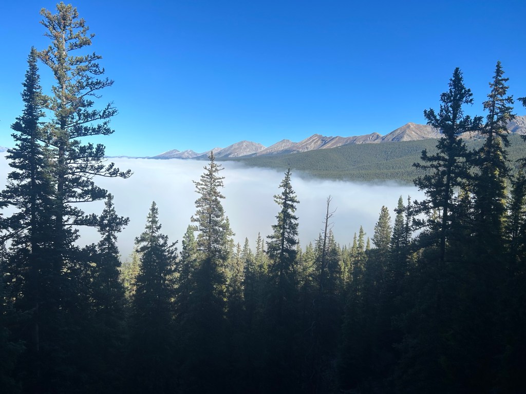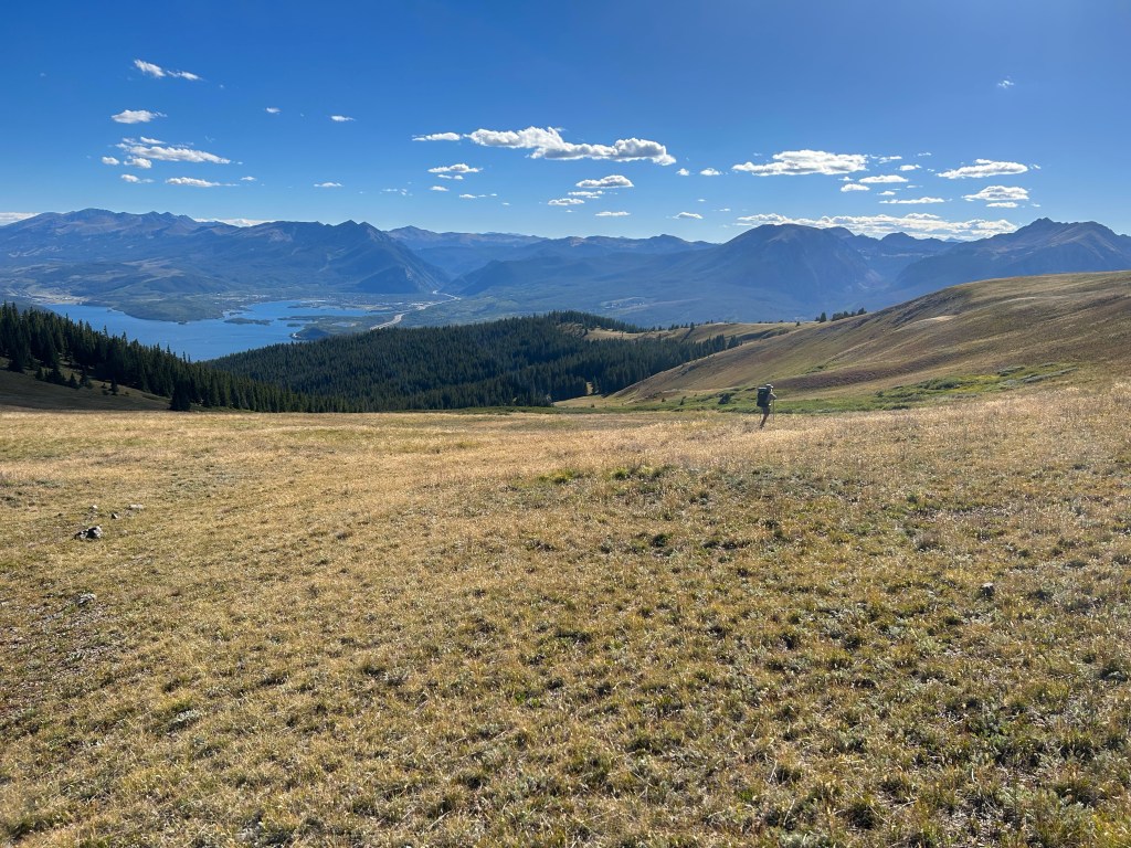 Vi började vandra strax efter 8. Stigning uppåt på snöig och isig trail i skog så solen värmde inte. Vandring blev lättare sedan när vi nådde över trädgränsen. Över Tincup pass. Sedan ner efter en gammal järnvägsbank. Upp sedan till nästa bergspass. Vi tog lunch innan sista klättringen vid en fin sjö.