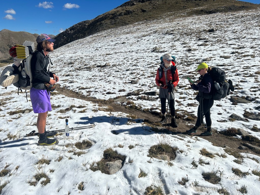 Solen träffade tältet kl 7:30. Det började smälta lite och jag torkade av. Pancho och Mercury och en massa CT-hikers var vid samma campspot. Scoot och Hammer dök oxå upp. Vi har inte sett dom sedan Glacier.
