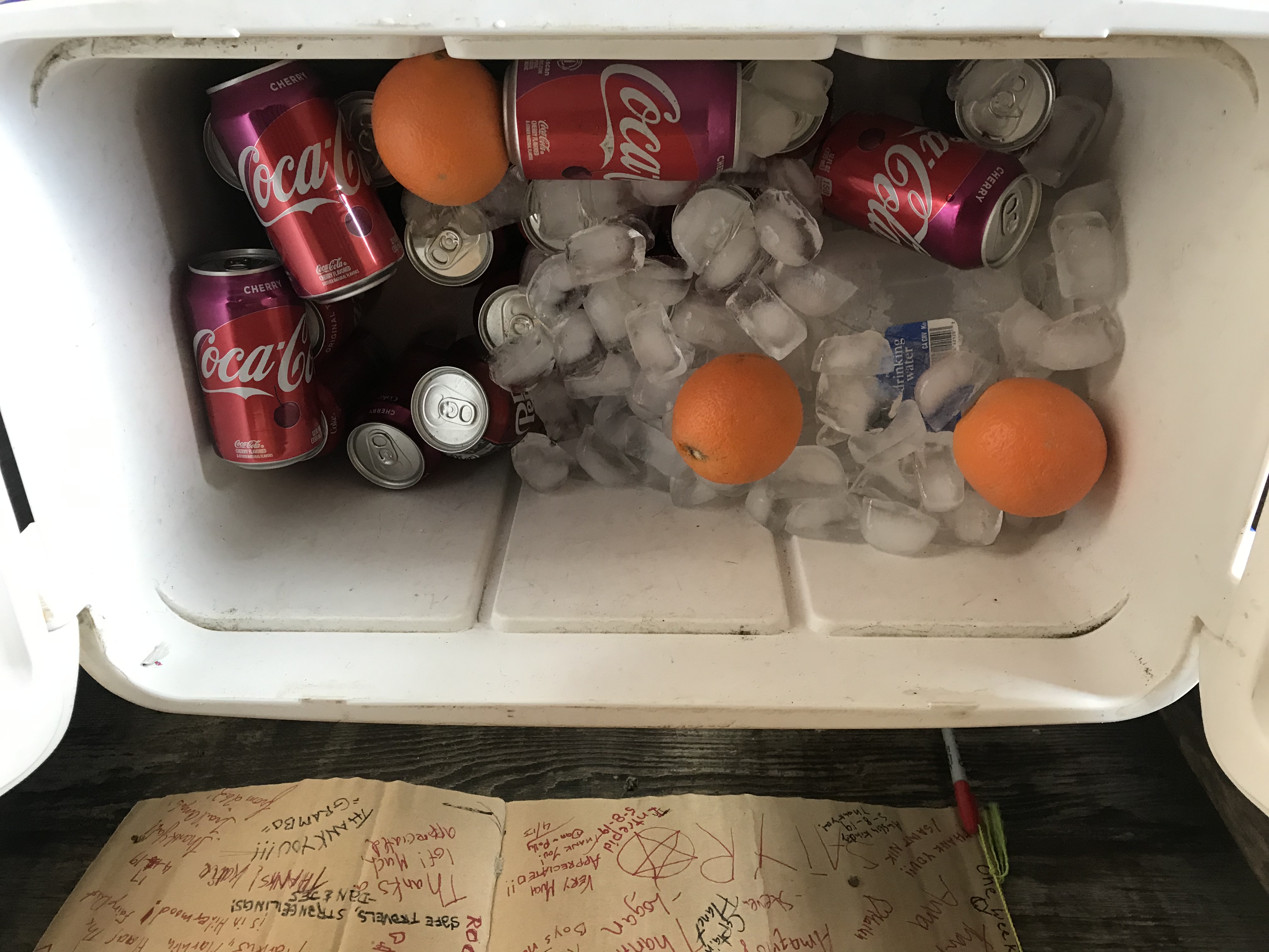 Började vandra vid kl 7:15. Kom ner till motorvägs viadukten där det fanns trail magic. Tog en cherry Coke och en apelsin.