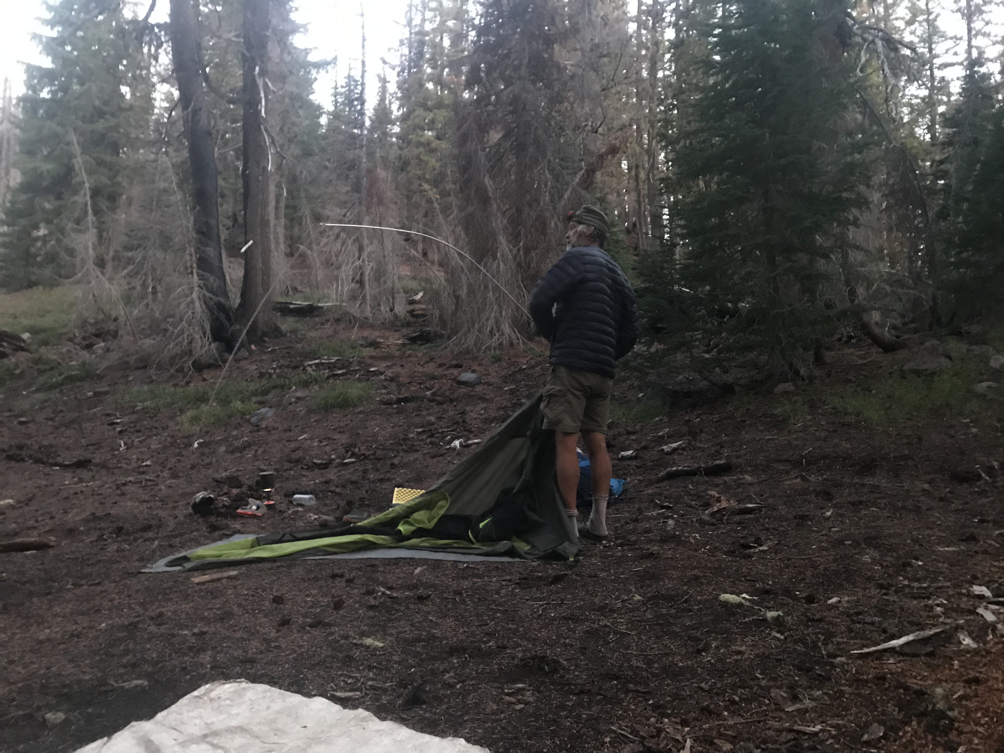 Kom fram till en water cache där all tältade, så jag beslöt mig för att stanna där oxå. Slog upp tältet i regnet.