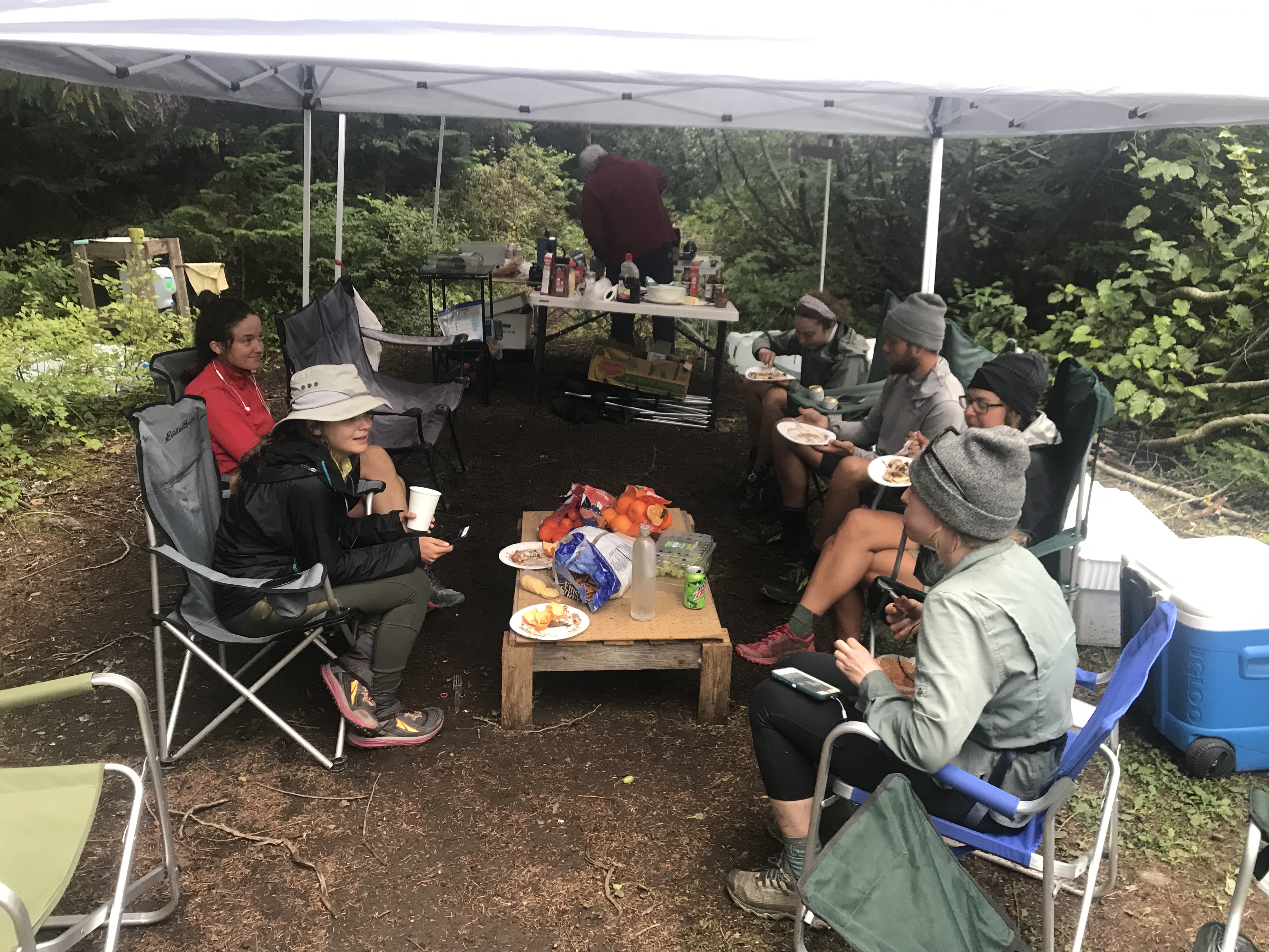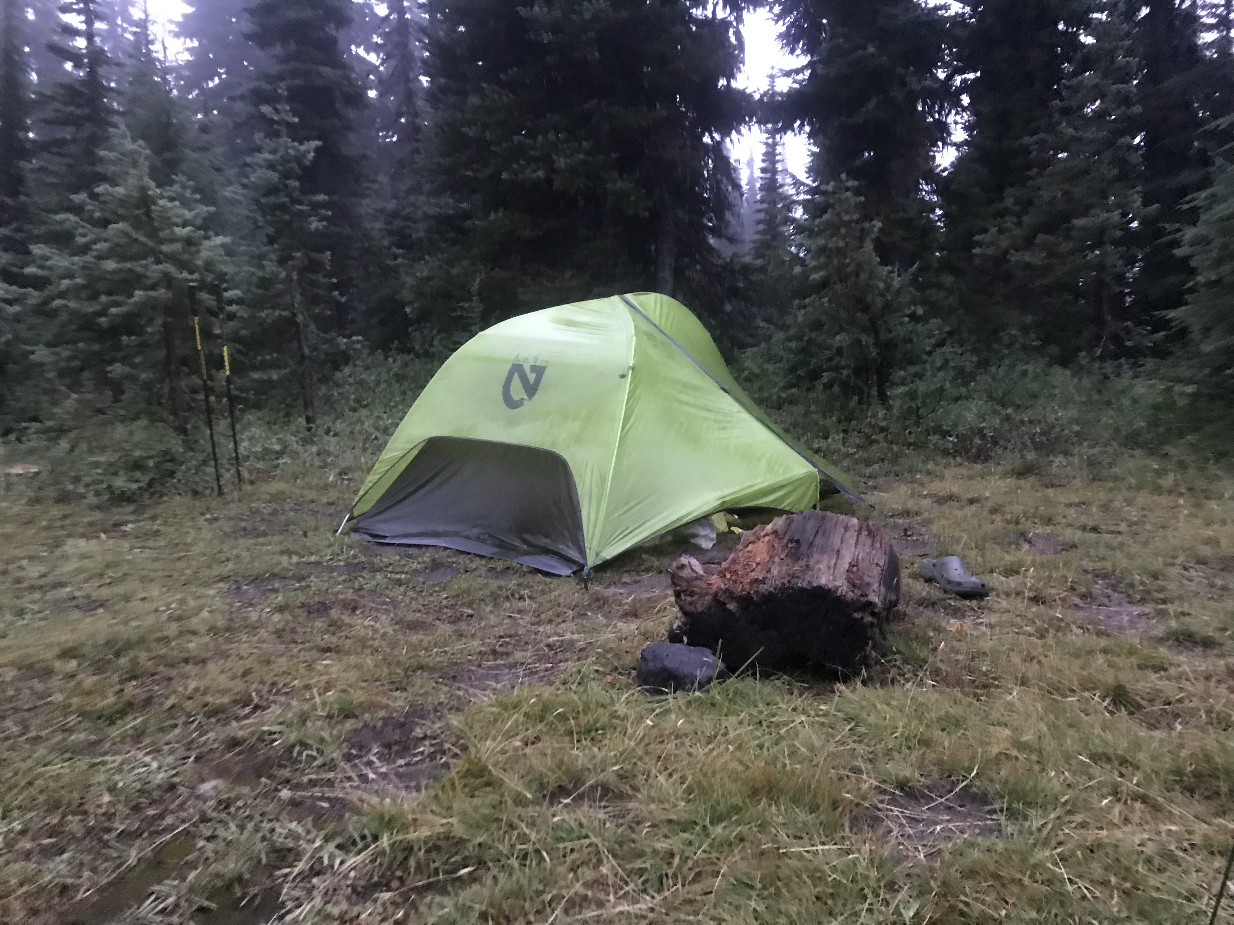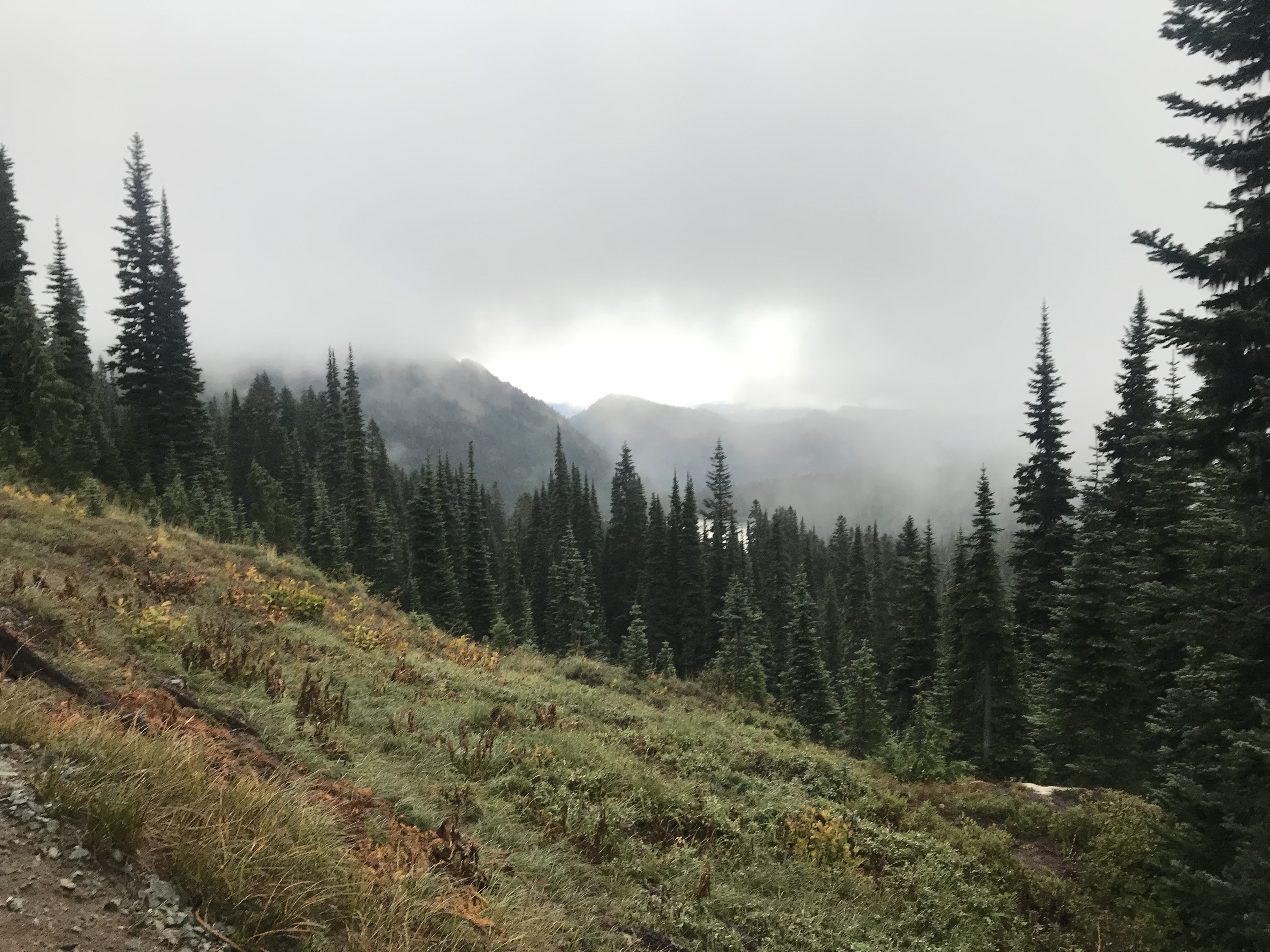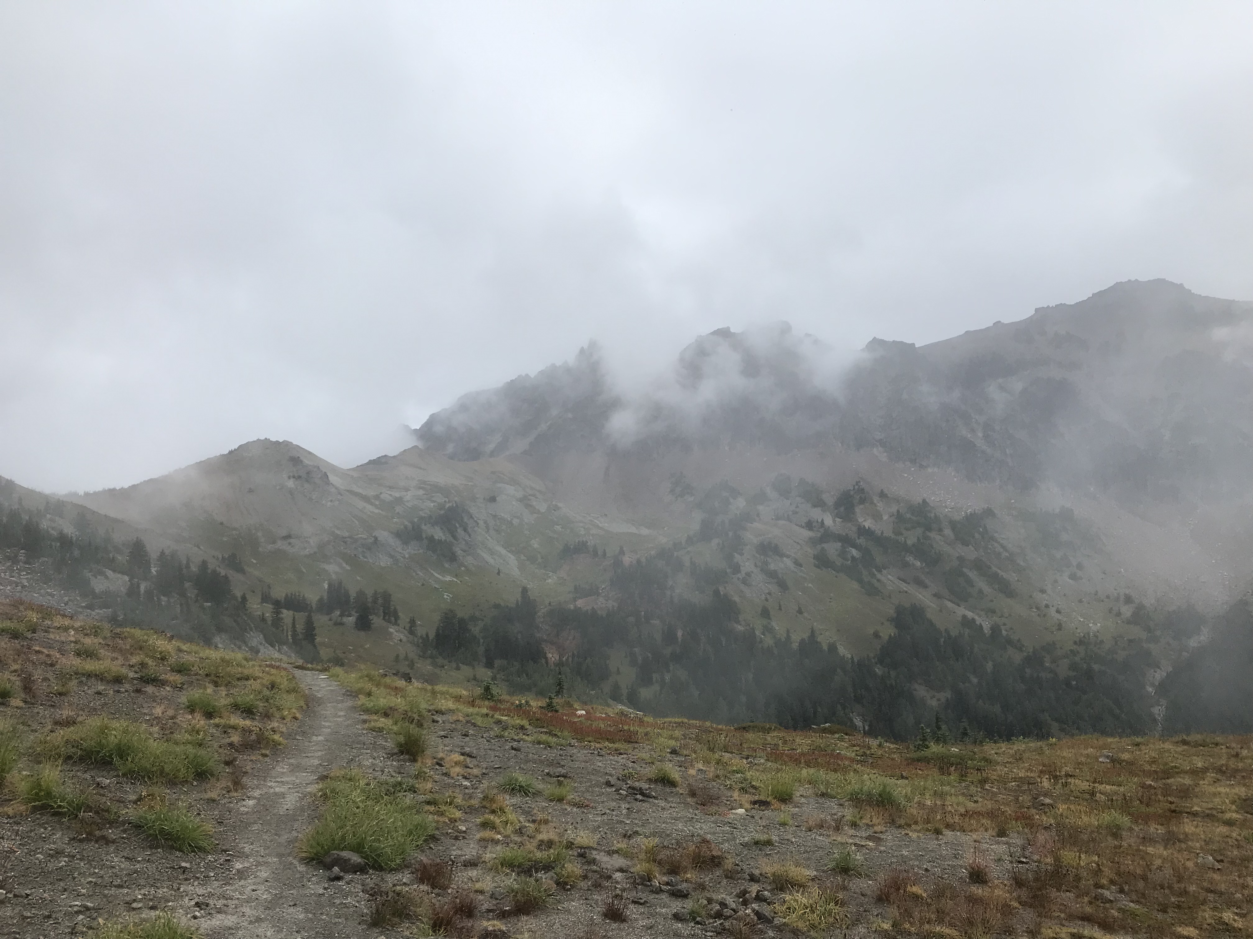 Klättring upp till Ivanhoe Lake sedan ner till PCT. Fuktigt och det regnade till och från.